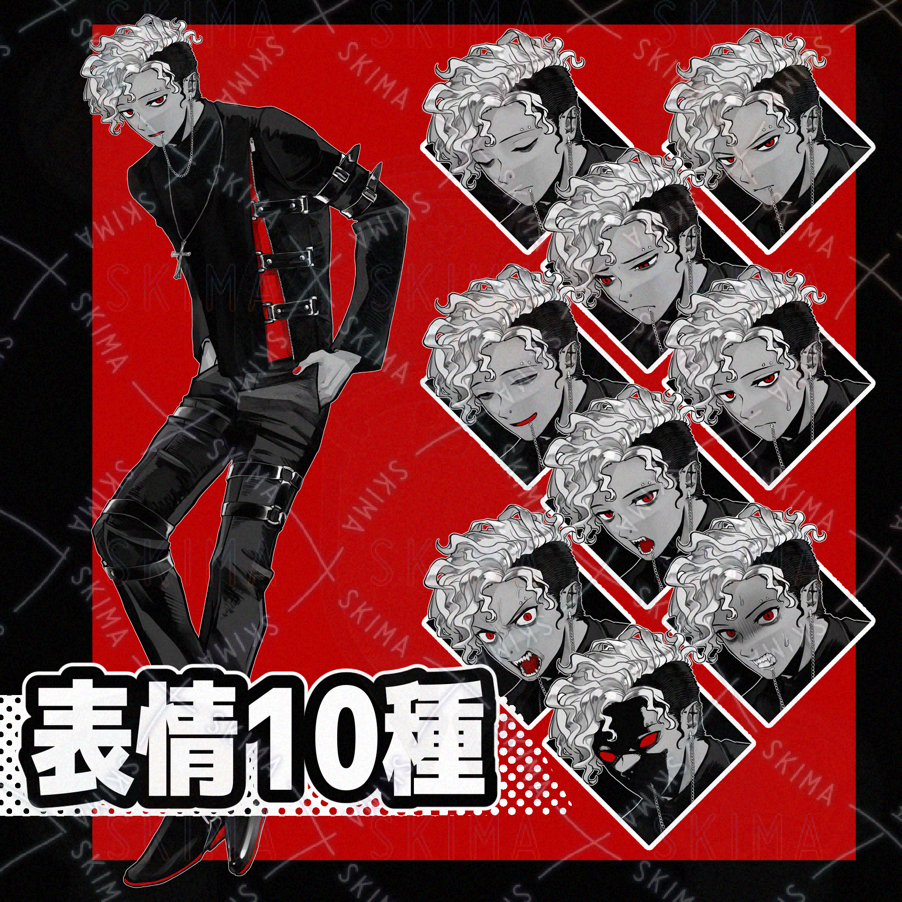 顔芸しないタイプの白髪赤目男性【表情10種】