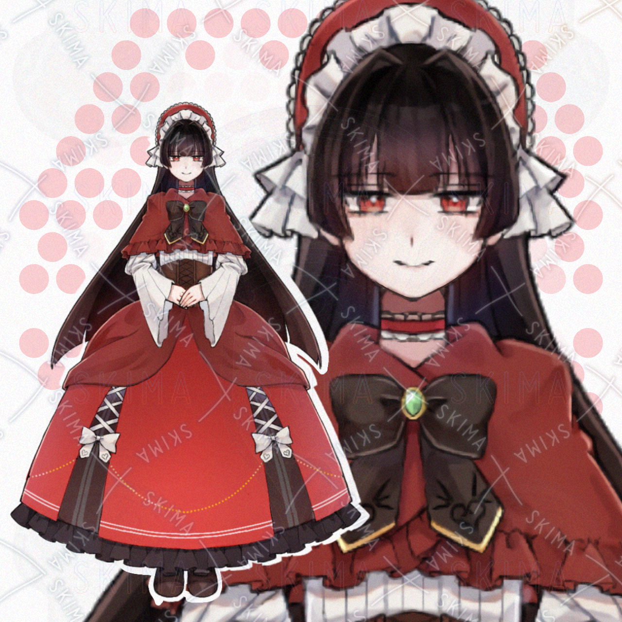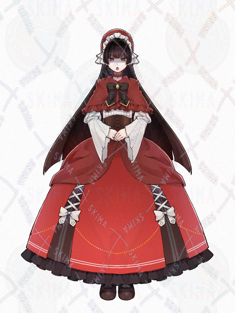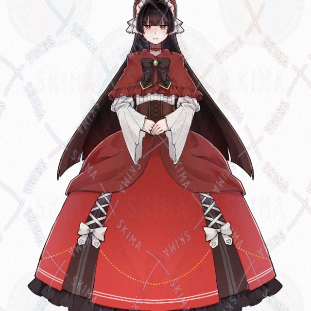 女の子 女性 ゴスロリ ロリータ 黒髪 姫カット お嬢様 赤目 TRPG 立ち絵 ドレス