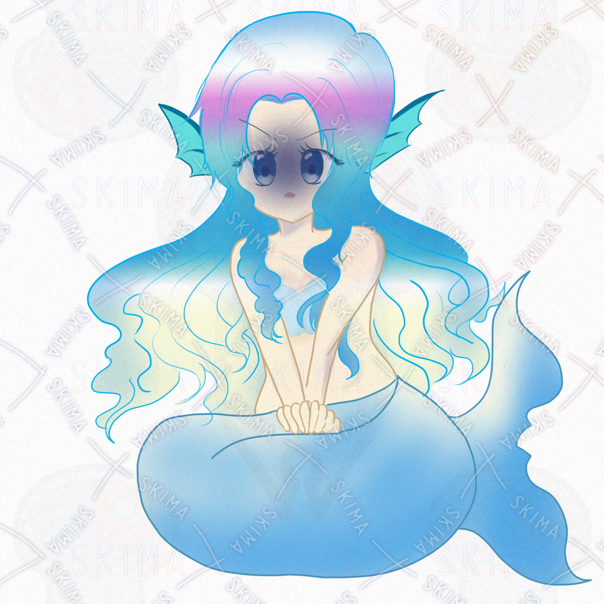 夢のような世界からやってきた、キュートな人魚の女の子を描きました。