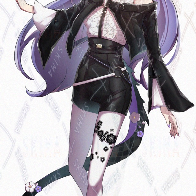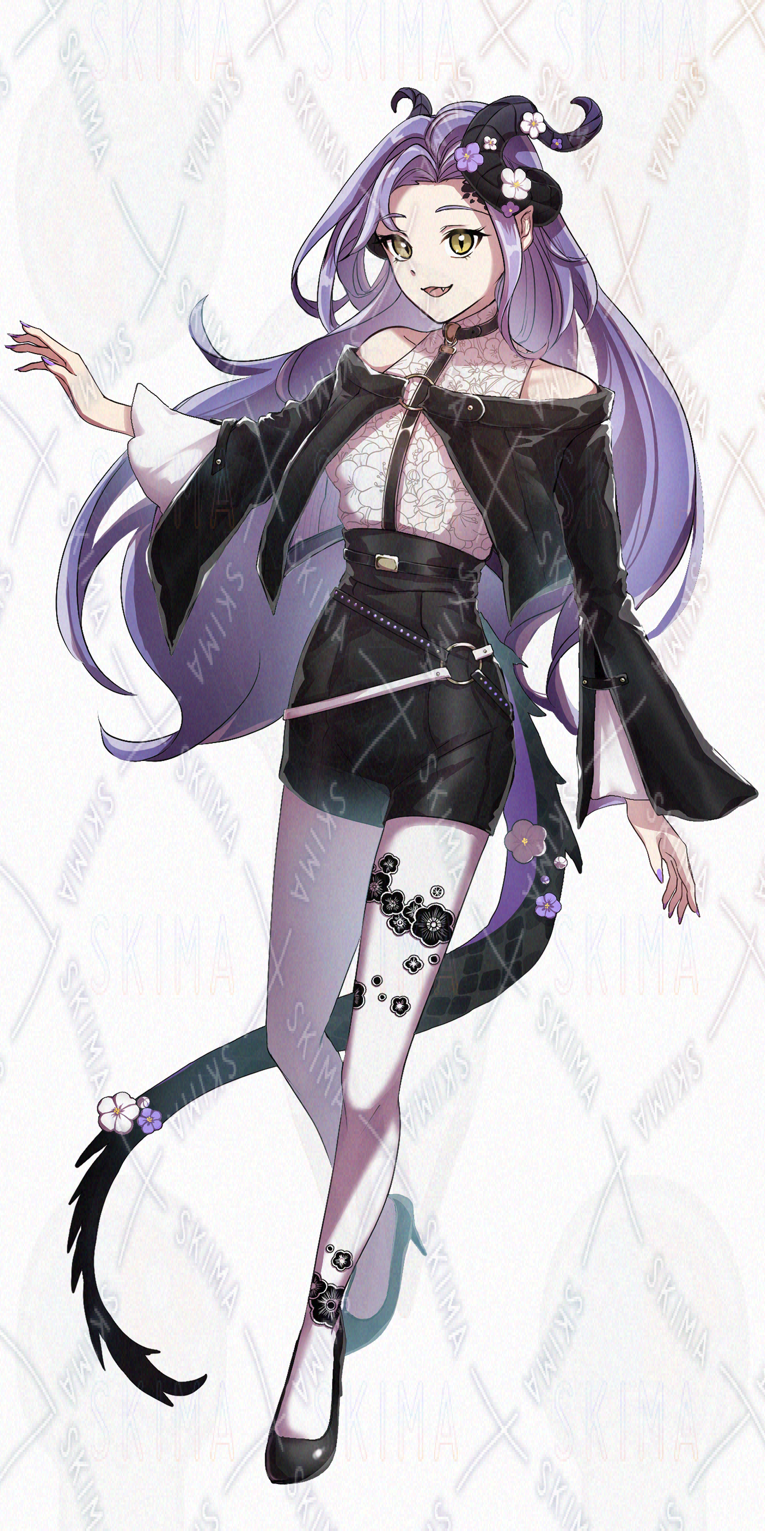 女性/立ち絵/花/長髪/角/人外