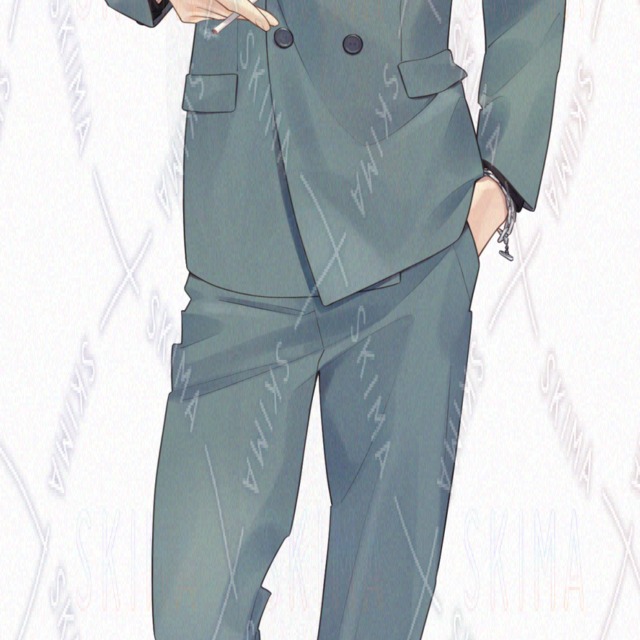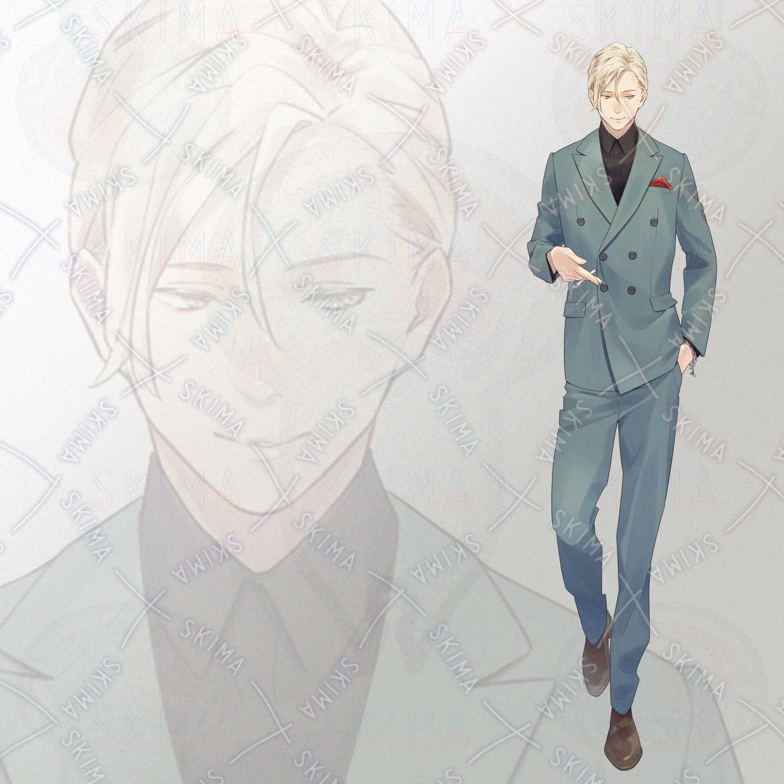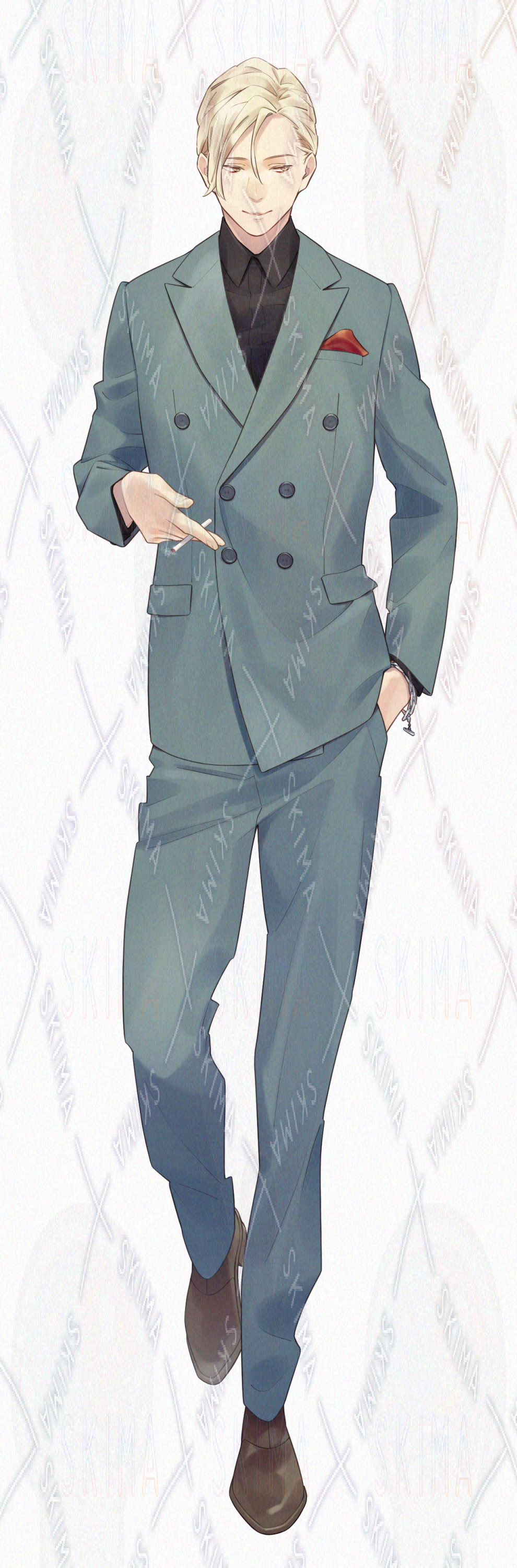 【全身立ち絵 男/青系/スーツ/たばこ/金髪】