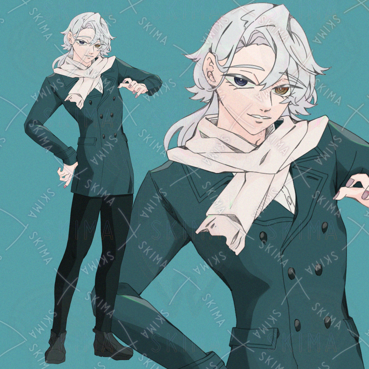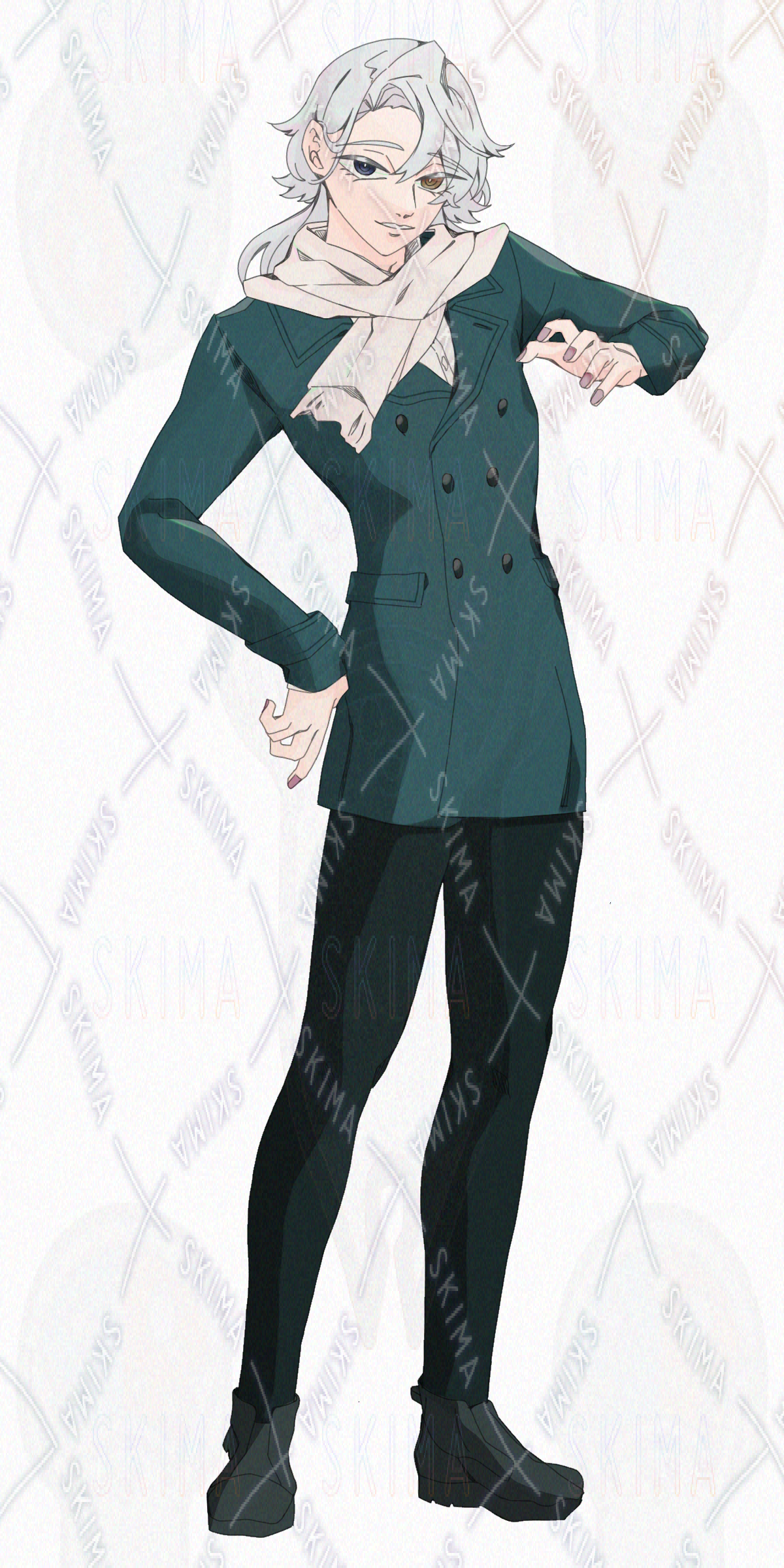 長髪白髪オッドアイ男子