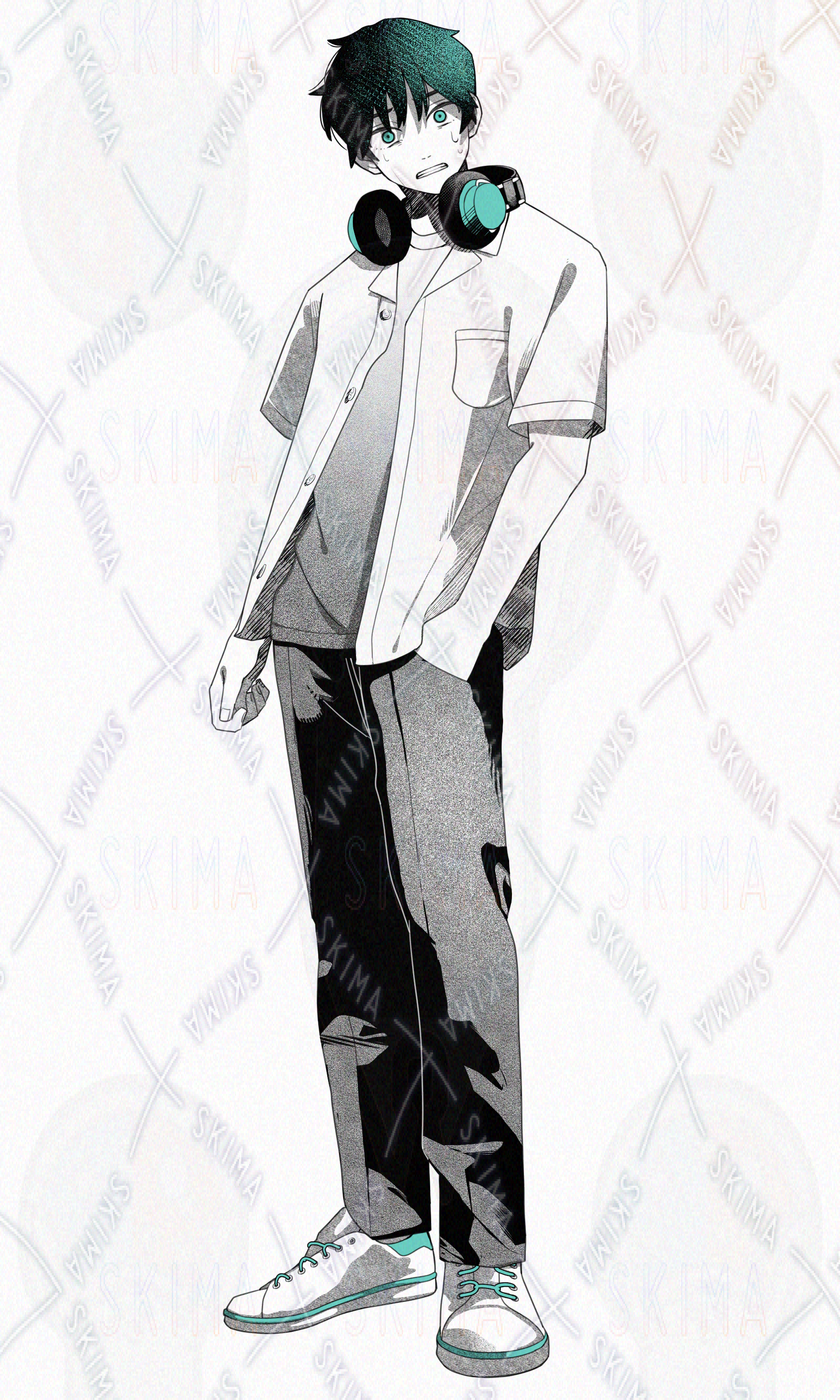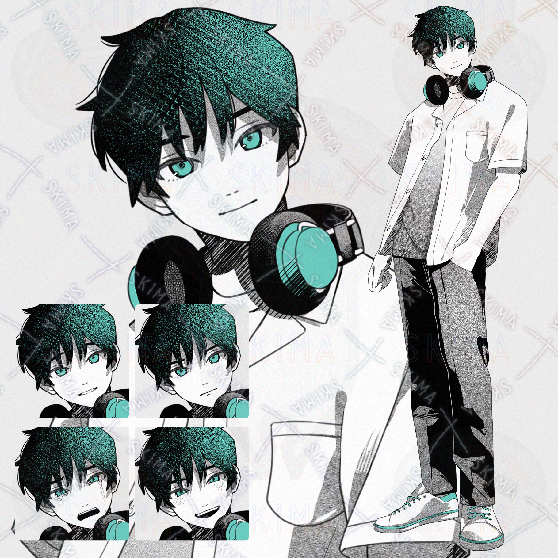 【表情10種】ヘッドフォンをした男の子(夏服)