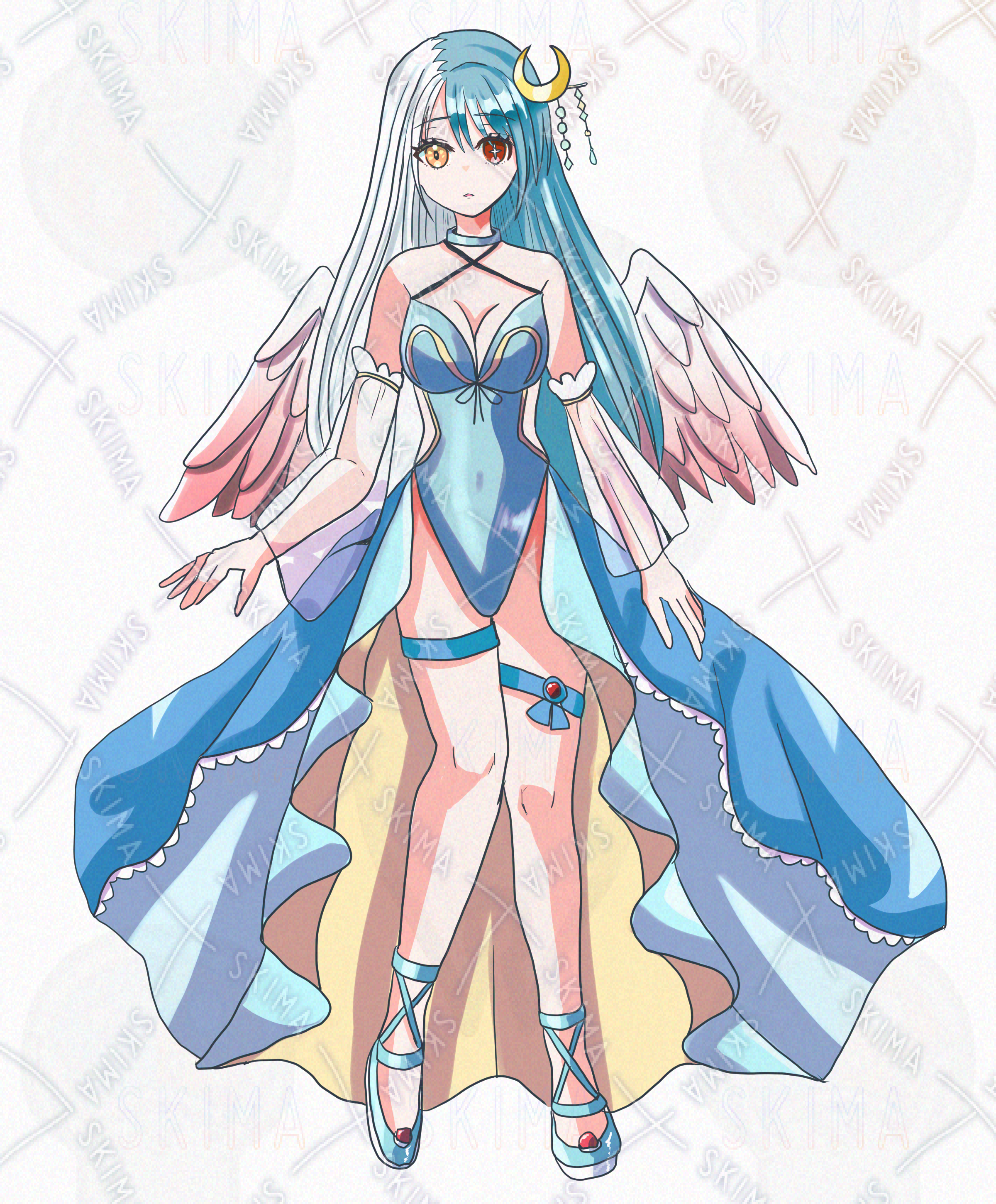 オッドアイ 青色 水色 白髪 アシンメトリー 羽根 天使