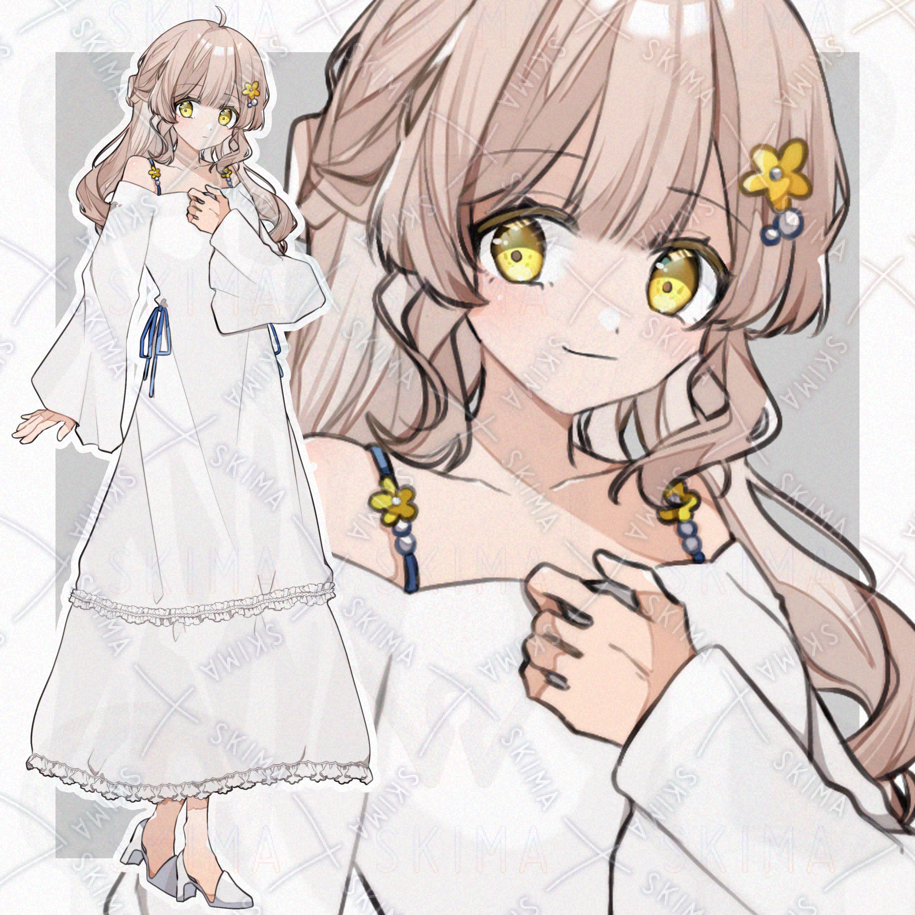 白いワンピースの少女【全身立ち絵・表情7種 】