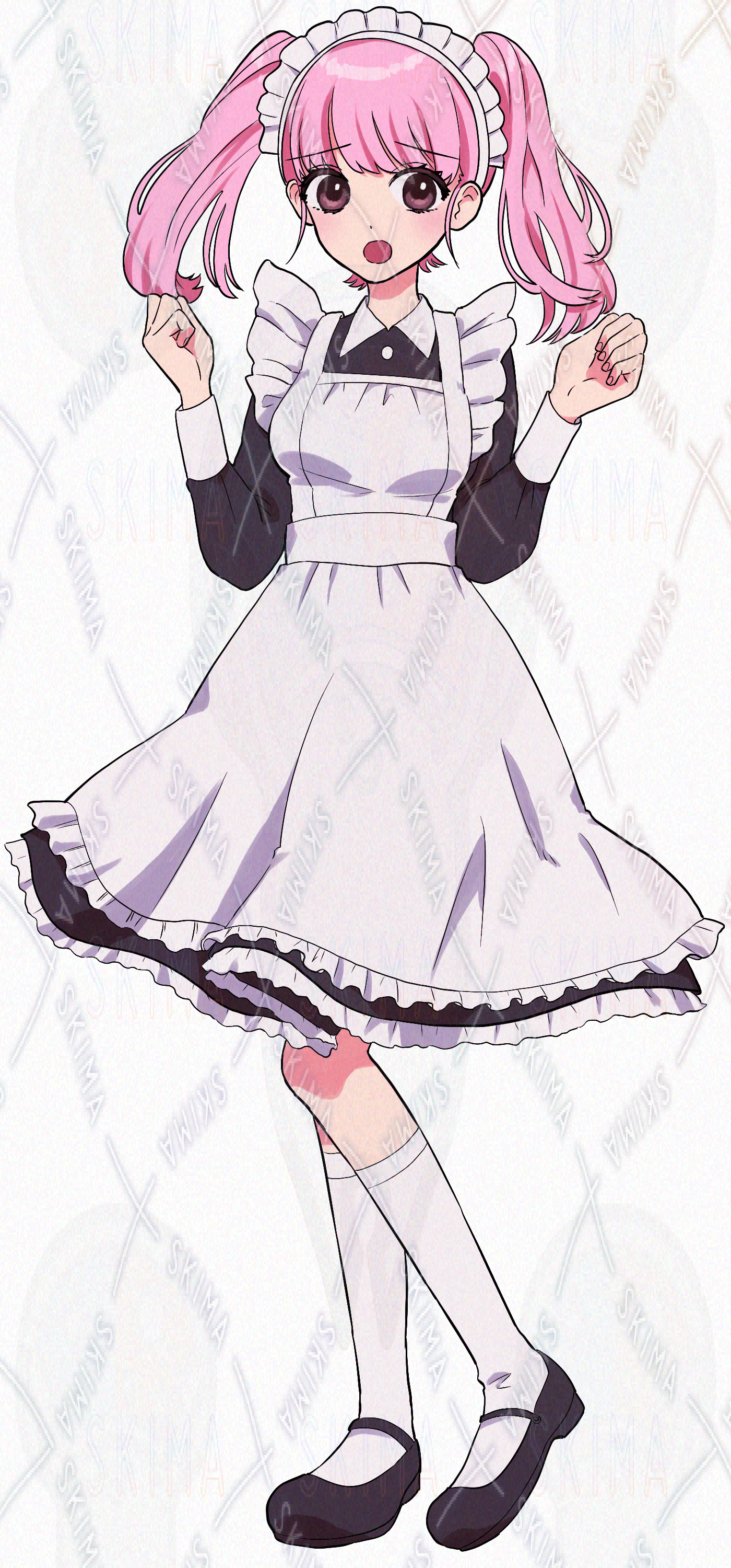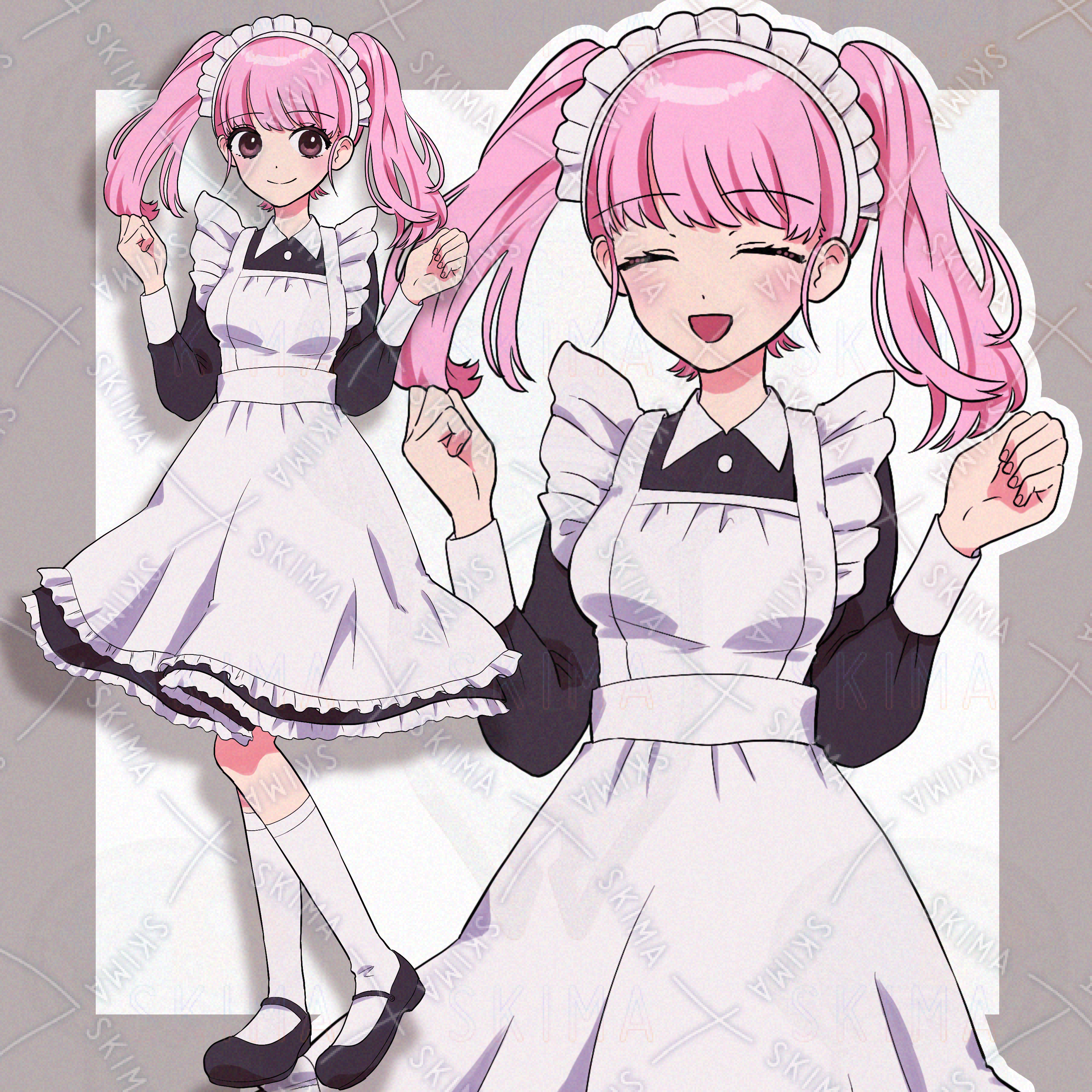 ミニスカートメイド服を着たツインテールの女の子です。表情差分は9種類です。