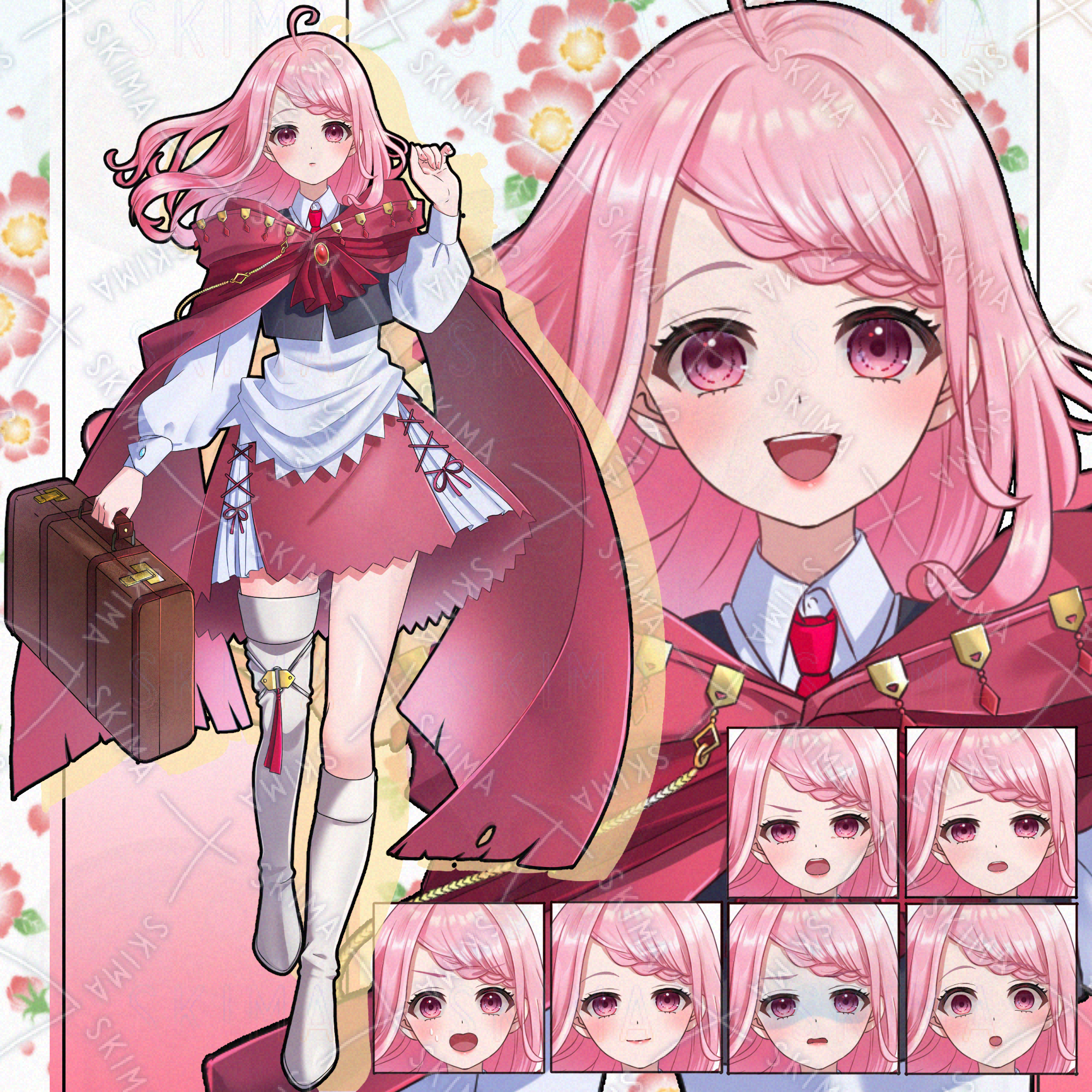 ピンク髪の旅人風の少女(表情差分8種+鞄)