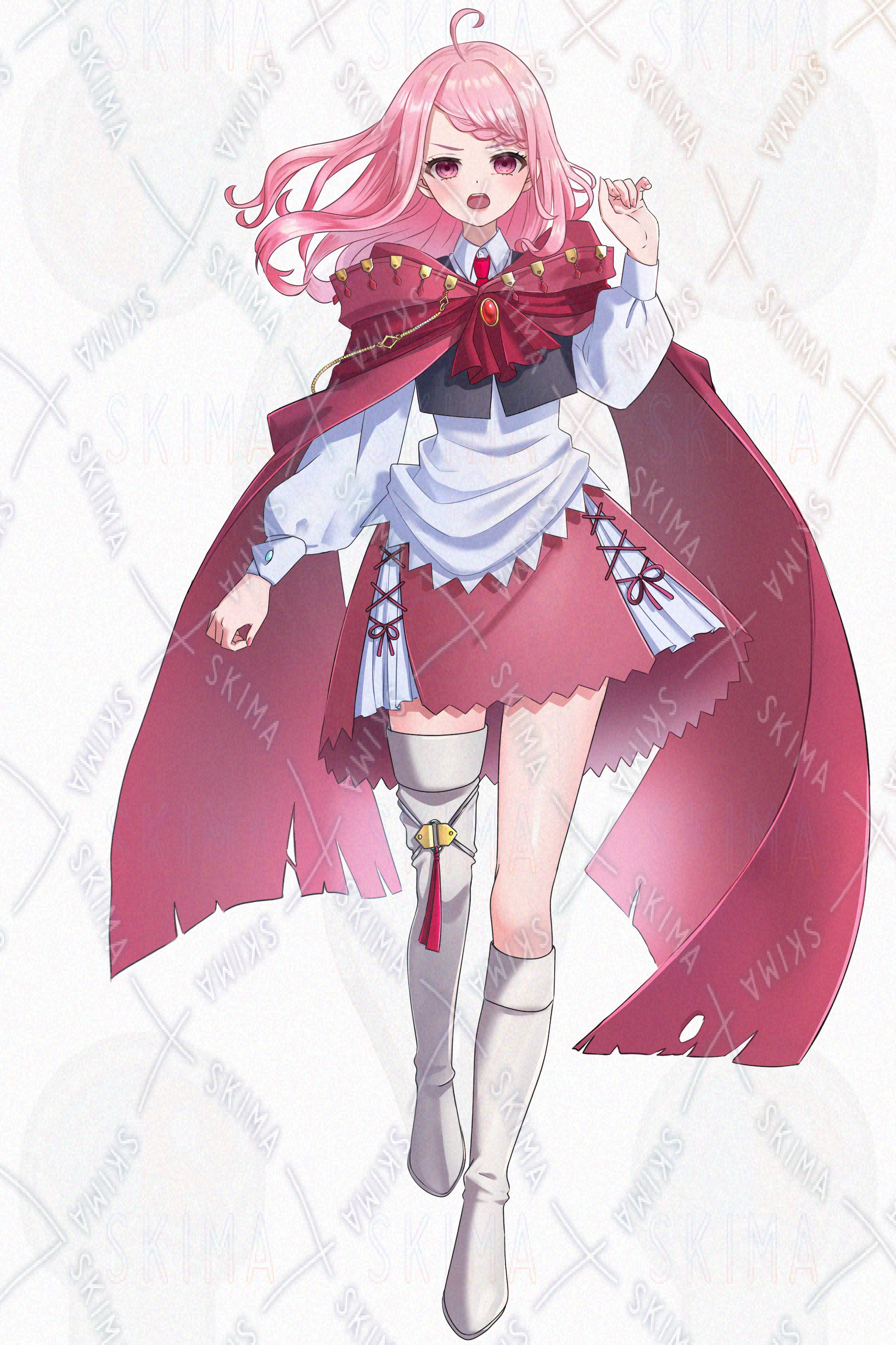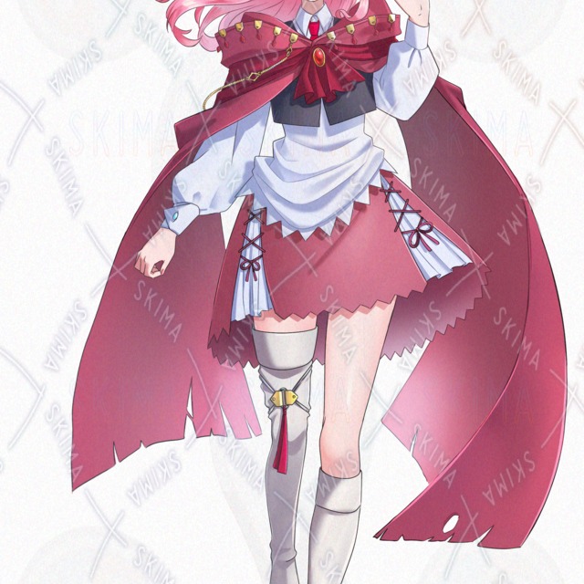 女の子、旅人、マント、トランク、バッグ、ピンク髪、ふわふわ、ふんわり、かわいい系、狂気、怒り、悲しみ