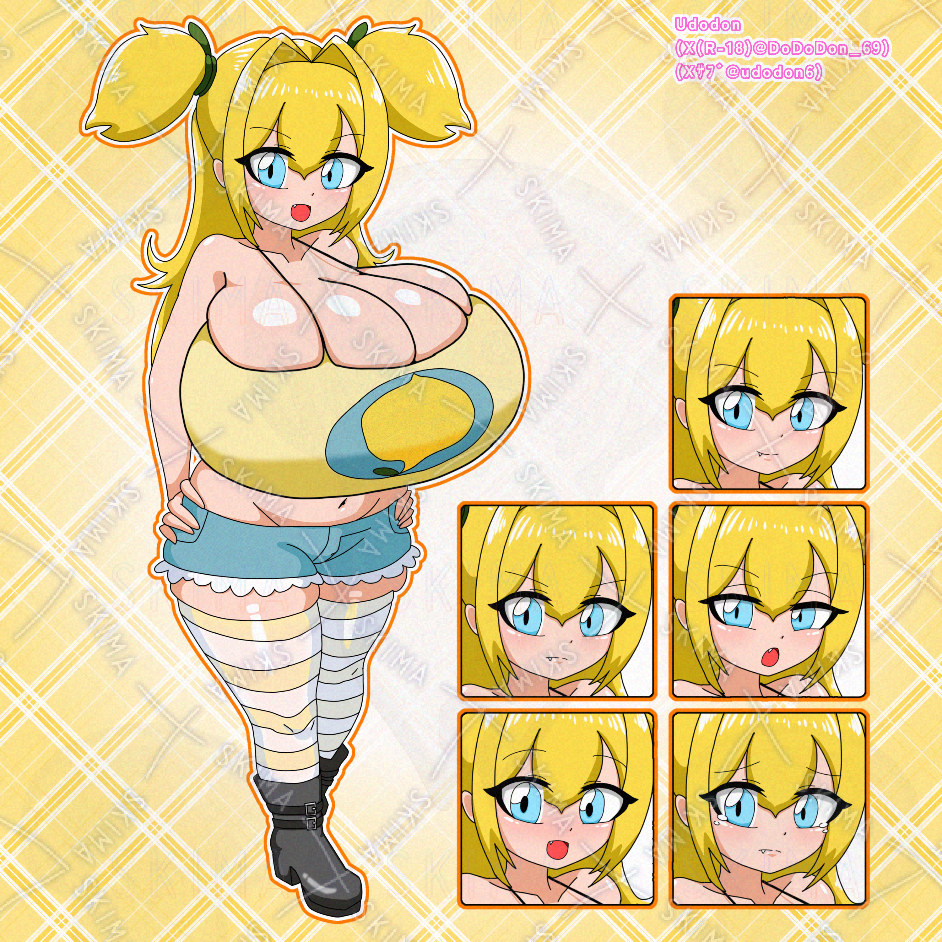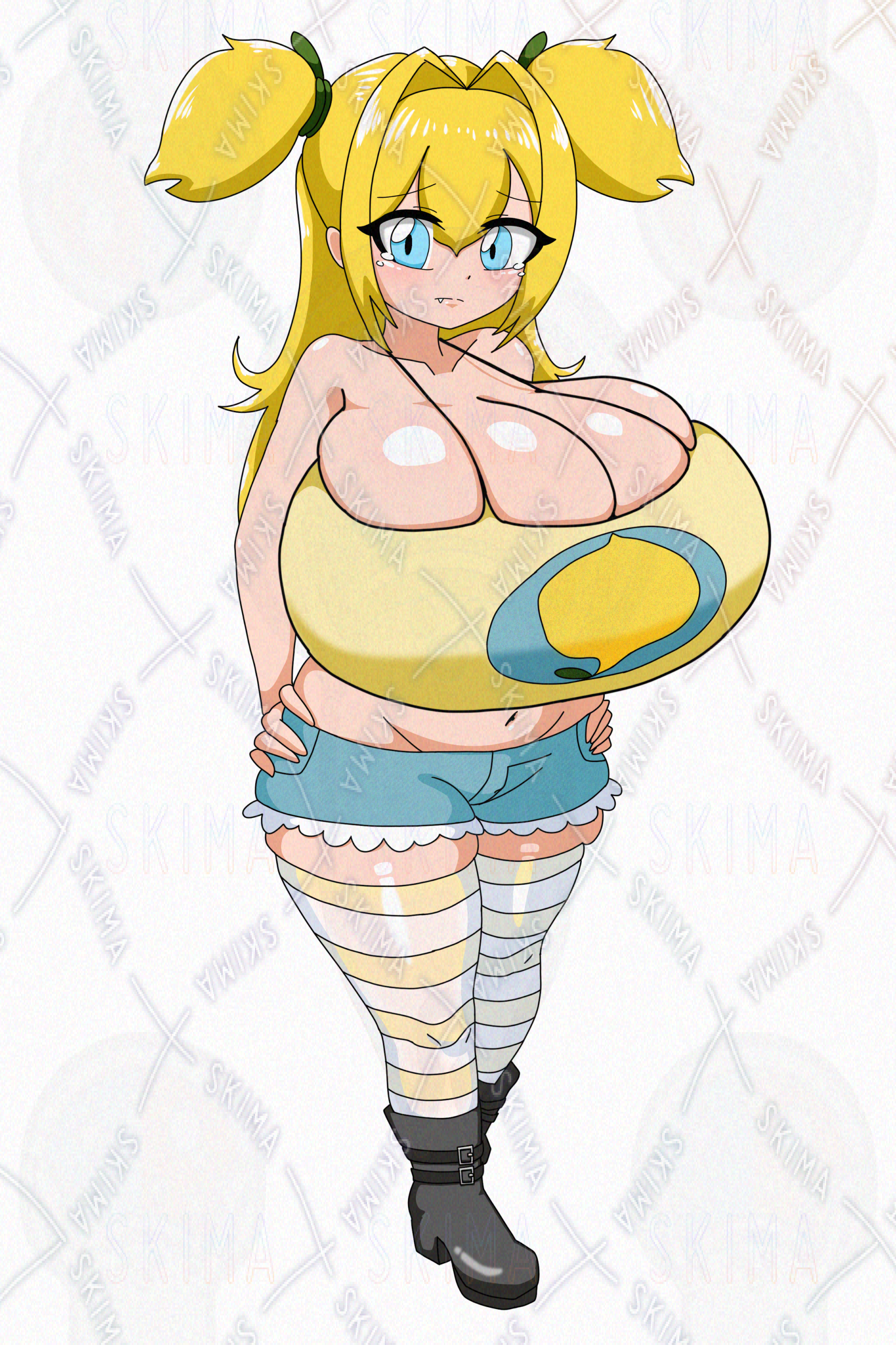 #おっぱい #巨乳 #爆乳 #女の子 #立ち絵 #イラスト #レモン #ホットパンツ #ツインテール