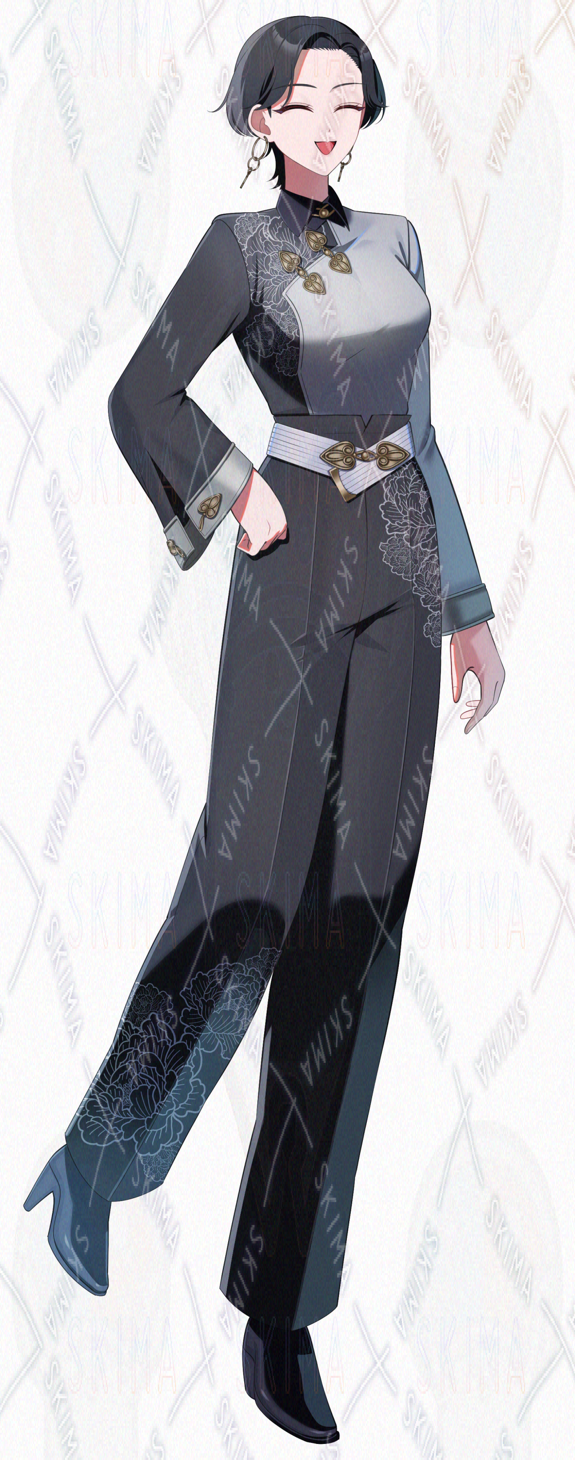 中華/現代/中華ファンタジー/女性/中性的/黒髪/ショートカット/黒/白