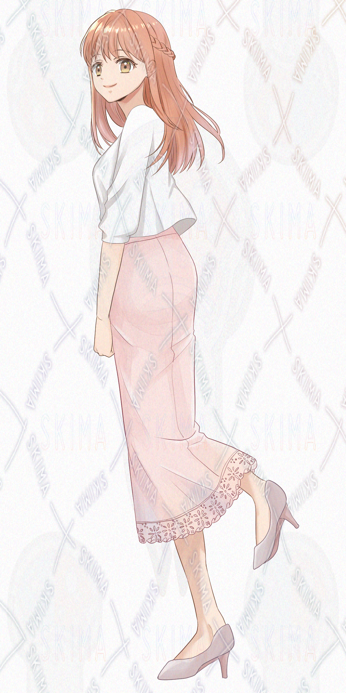 立ち絵、表情差分、女性、茶髪、ロングスカート、ストレート、上品