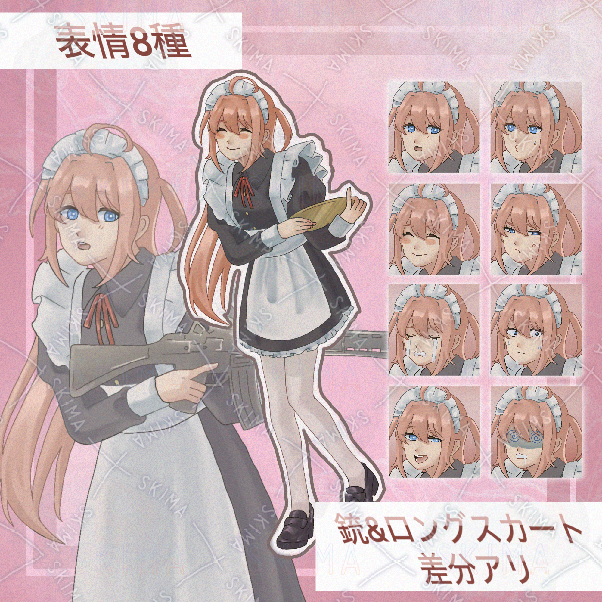 戦える桃色メイド【ロングスカート着脱可・銃着脱可・表情差分8種】
