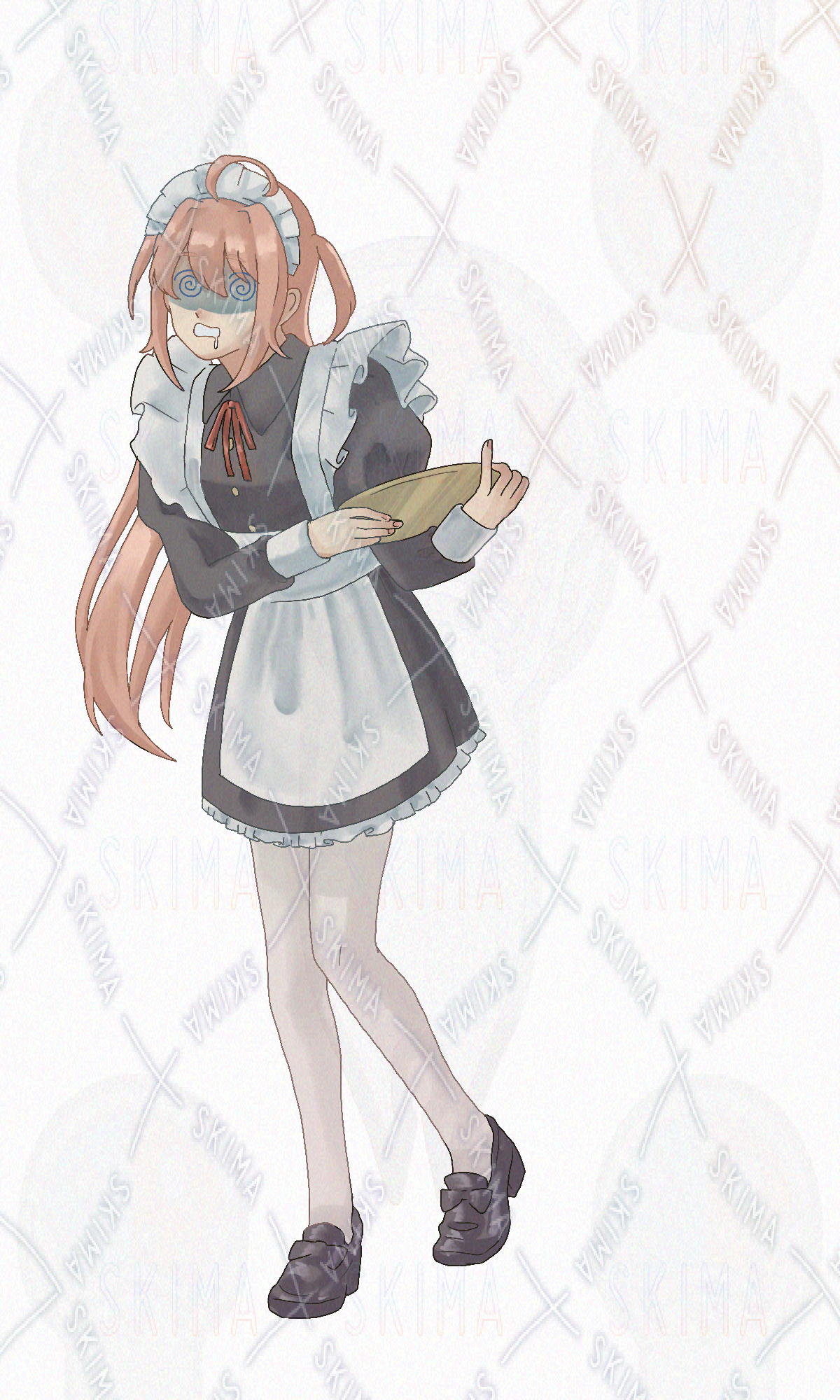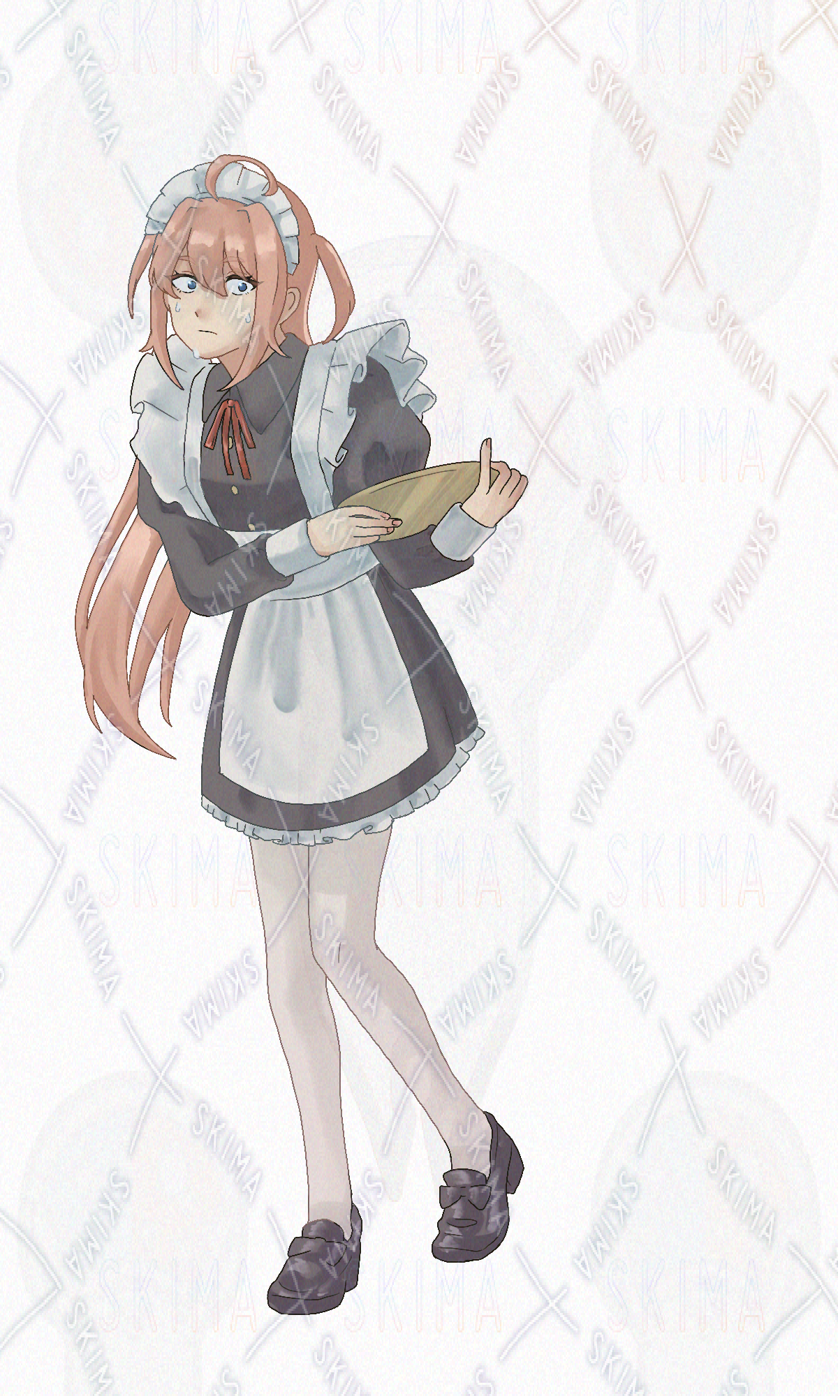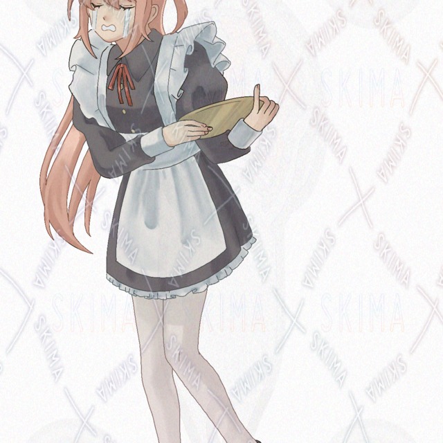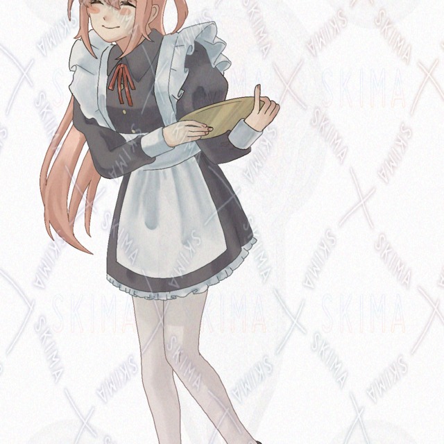 メイド服の女性の立ち絵イラストになります。