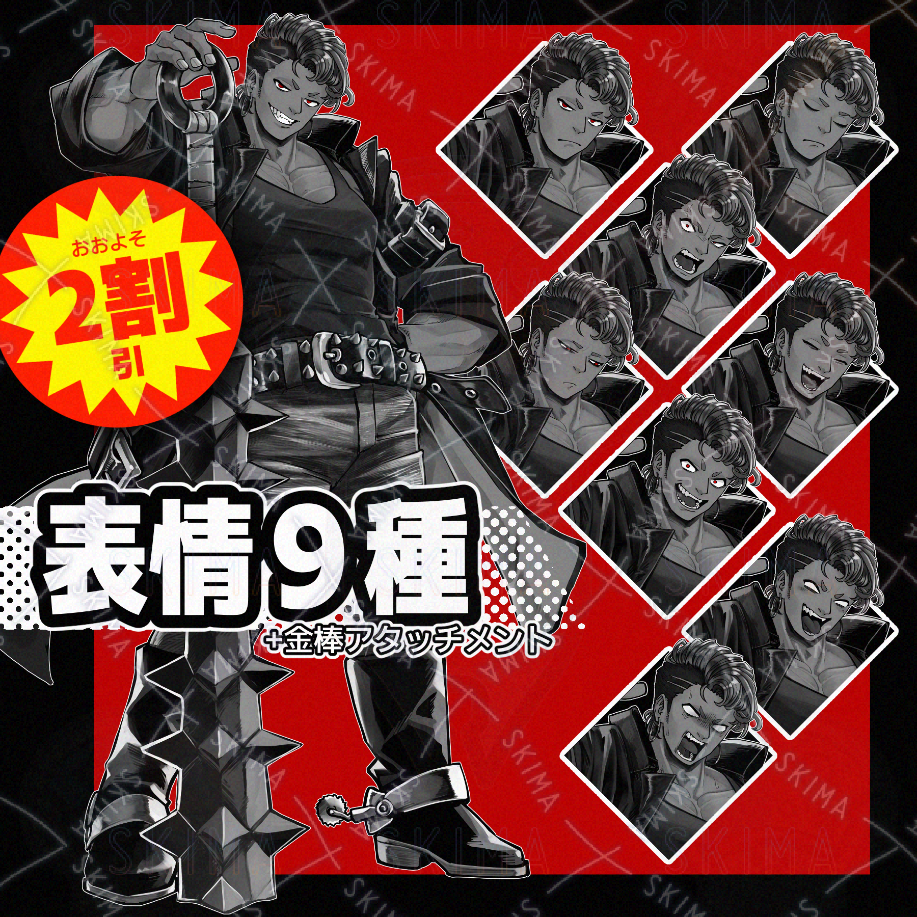 顔芸するタイプのチンピラ男性【表情9種】