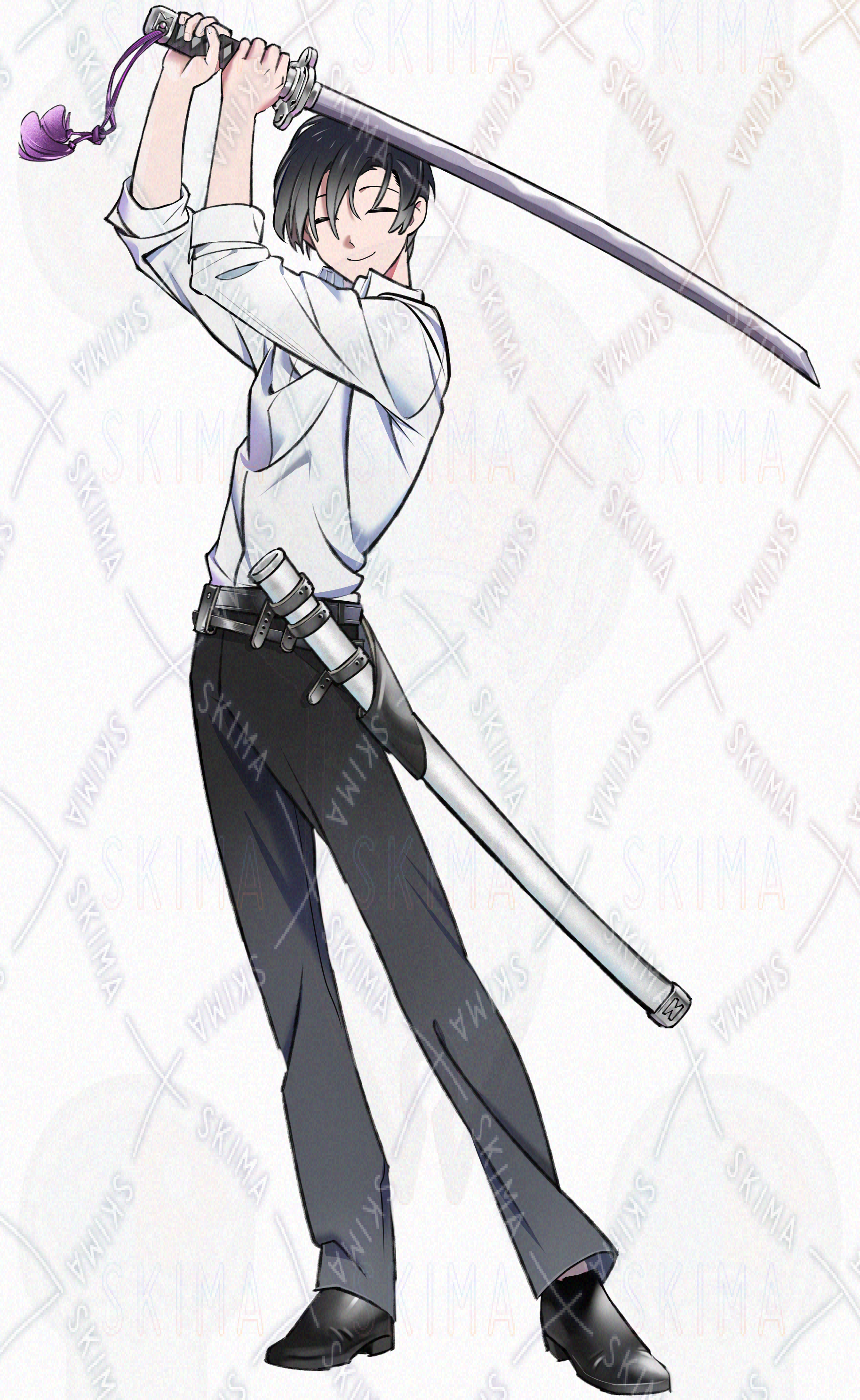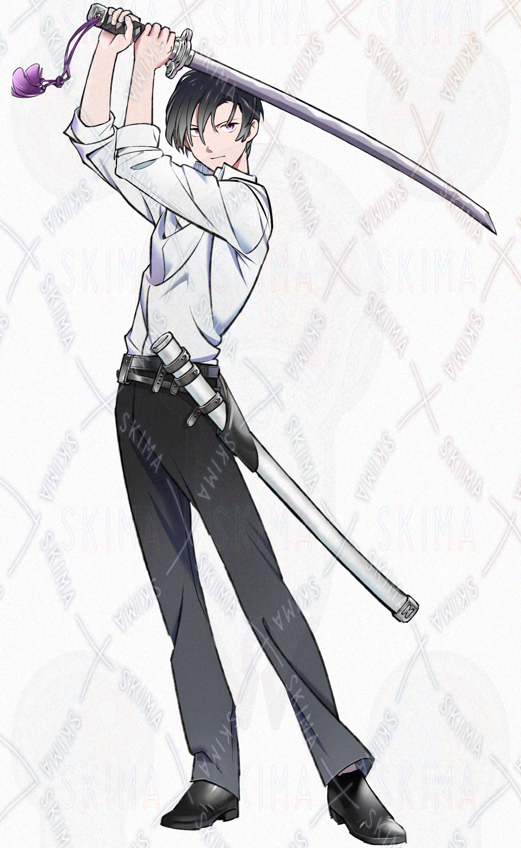 刀で戦う青年