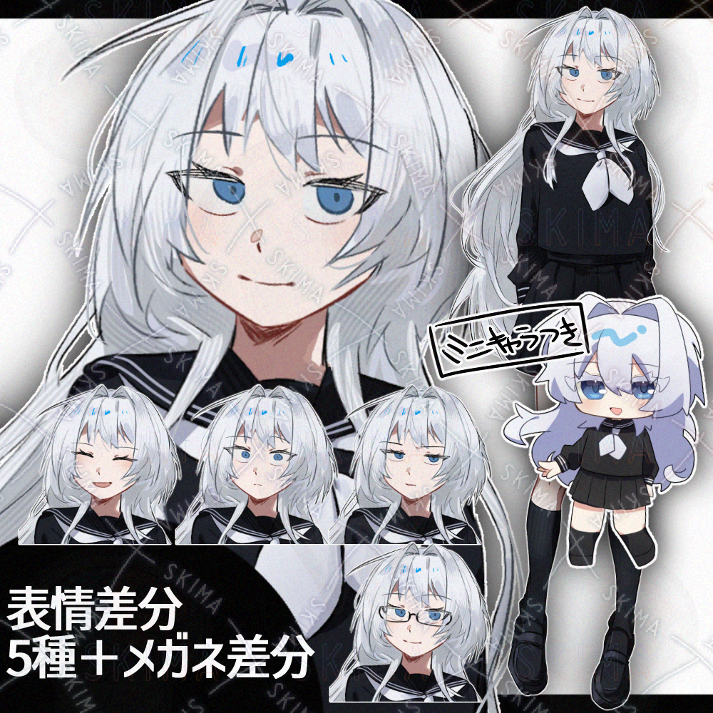 セーラー服白少女/ミニキャラあり 表情5種+メガネ差分