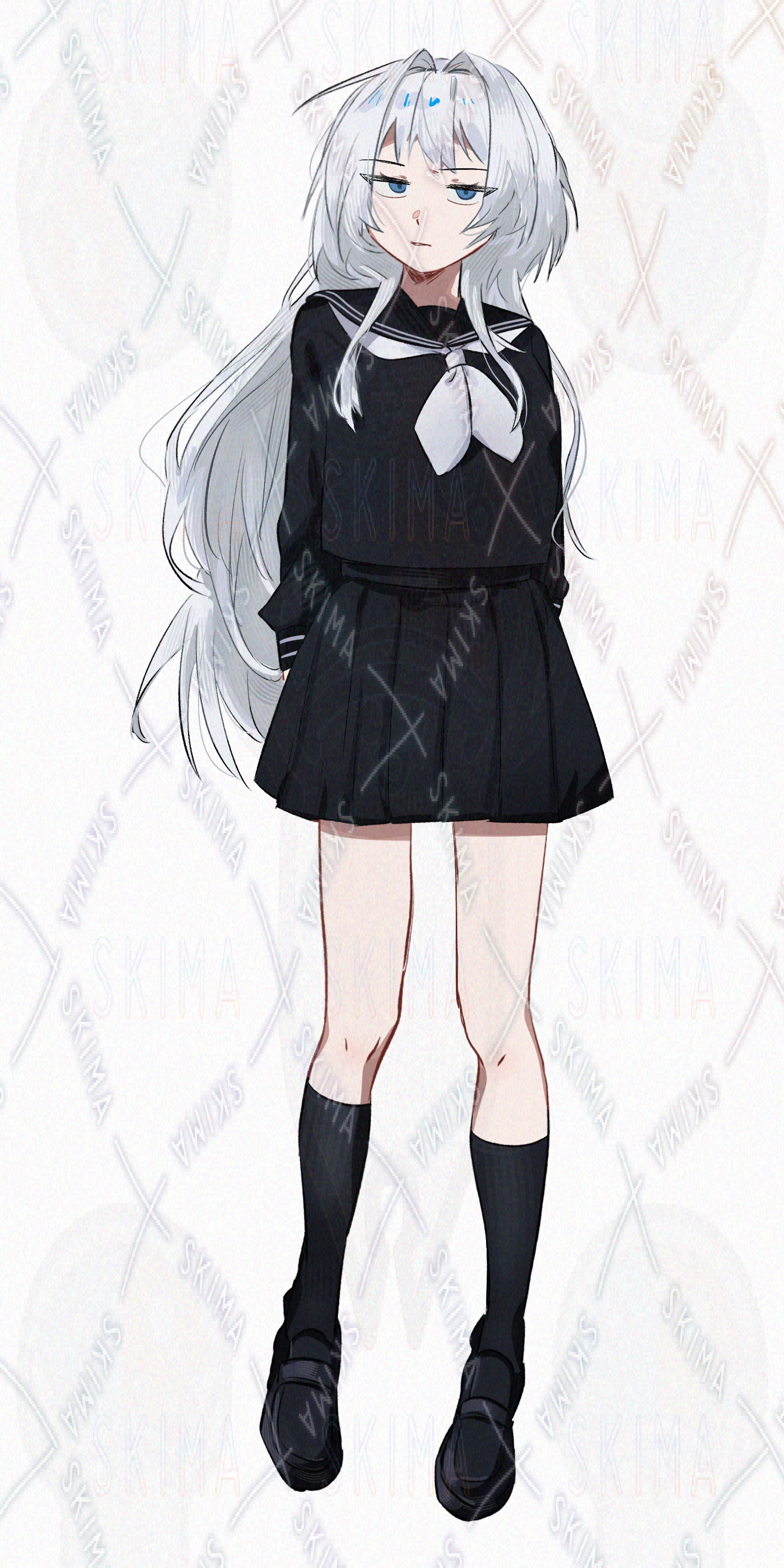 白髪でセーラー服を着た女性キャラクターです。設定をお好きに付与して可愛がってあげてください。