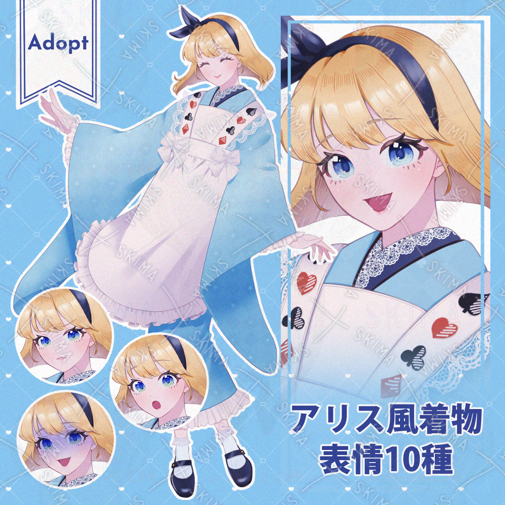 着物×アリス風のAdopt(立ち絵+表情差分10種)です。