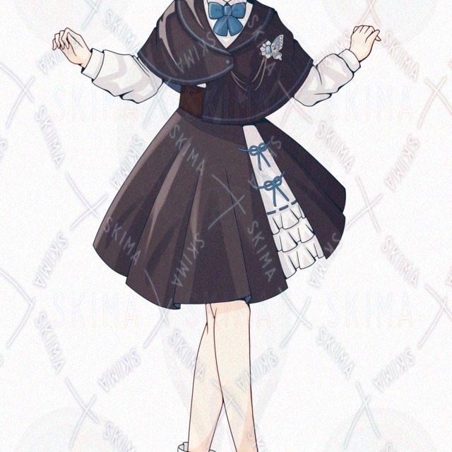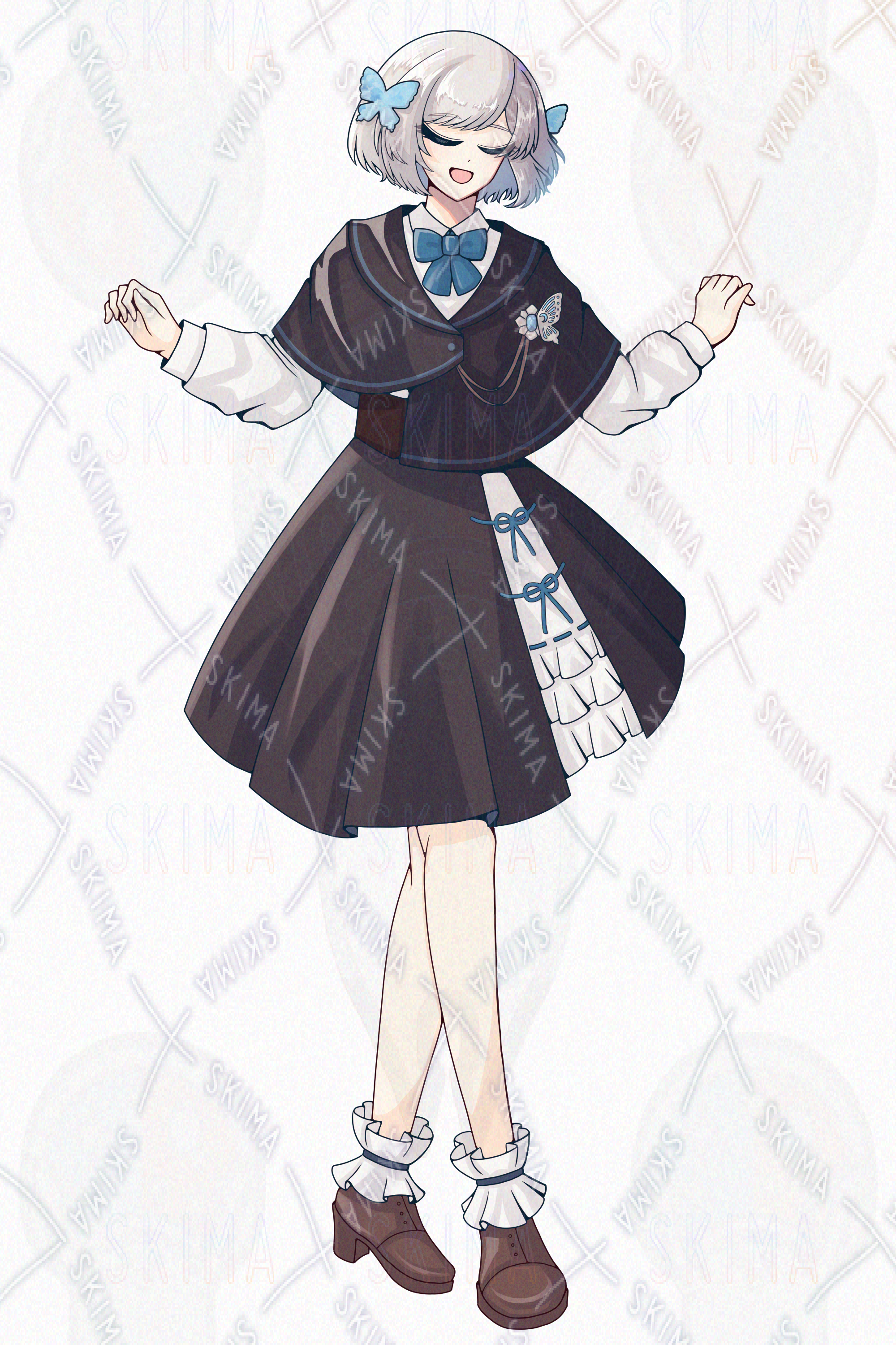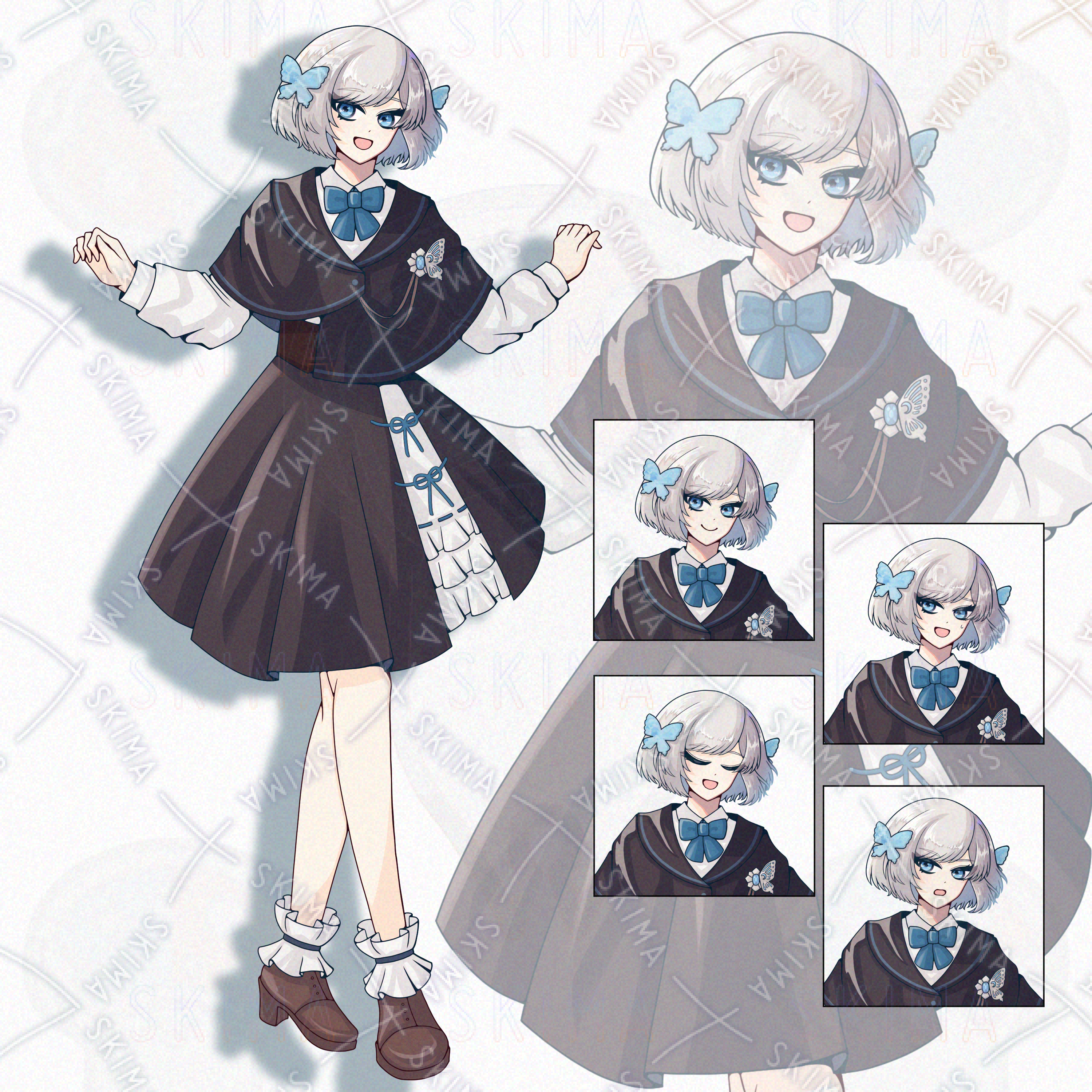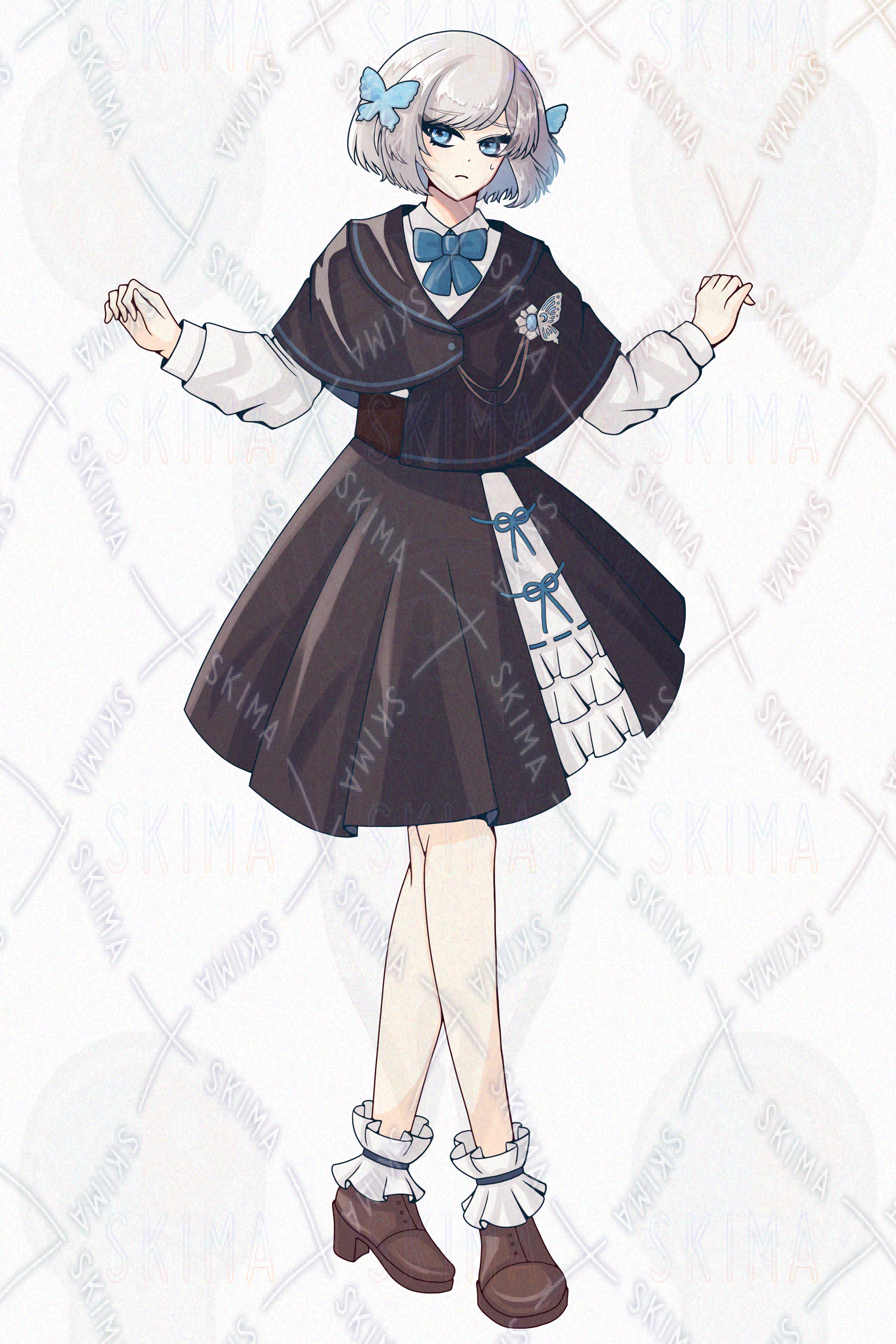 ボブ/銀髪/スカート/蝶々/女性/女の子/青/水色