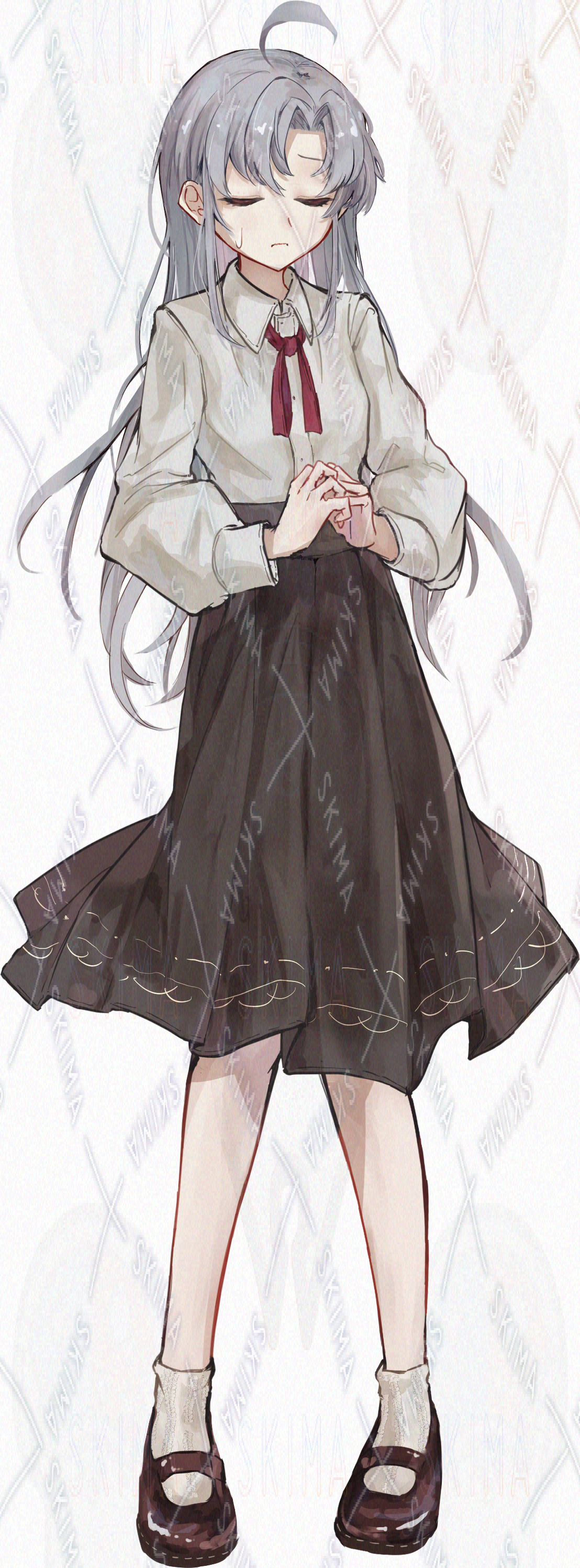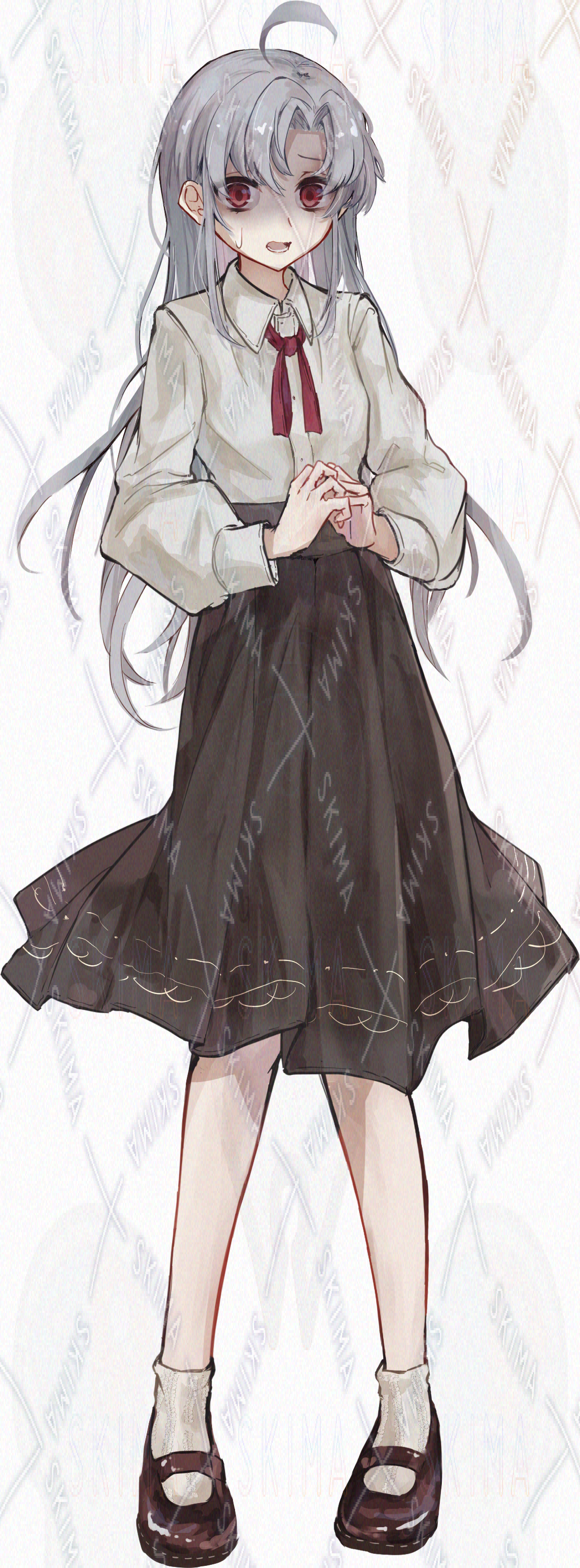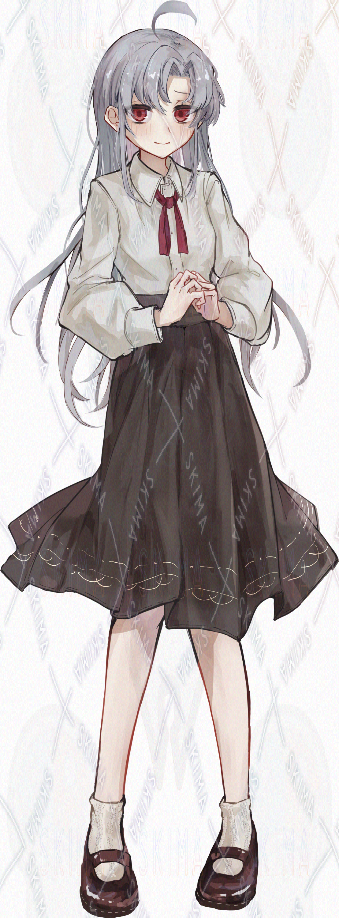 銀髪/赤目/アルビノ/アホ毛/赤リボン/女の子