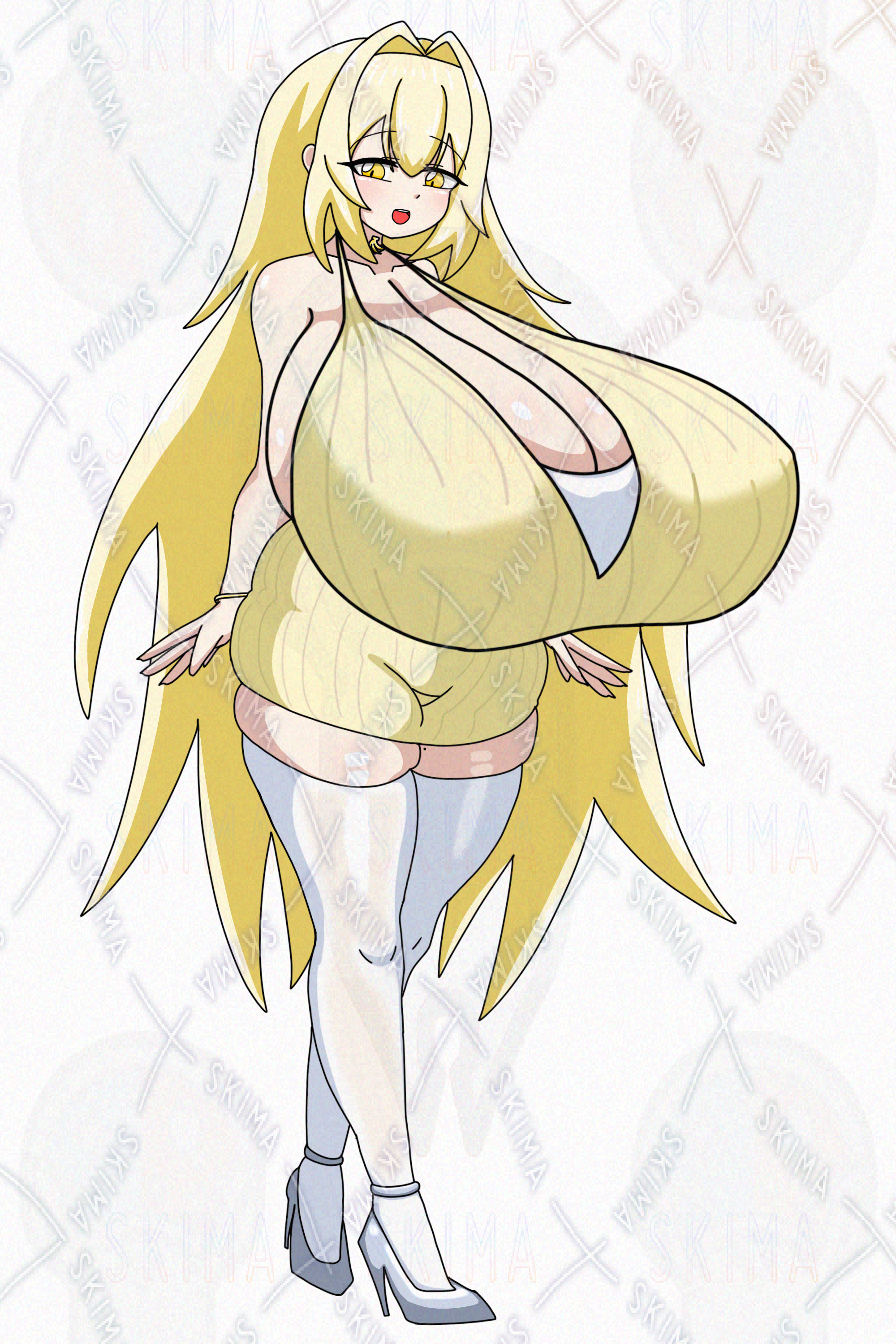 #おっぱい #巨乳 #爆乳 #女の子 #立ち絵 #イラスト #バナナ #ドレス #高級感 #むちむち