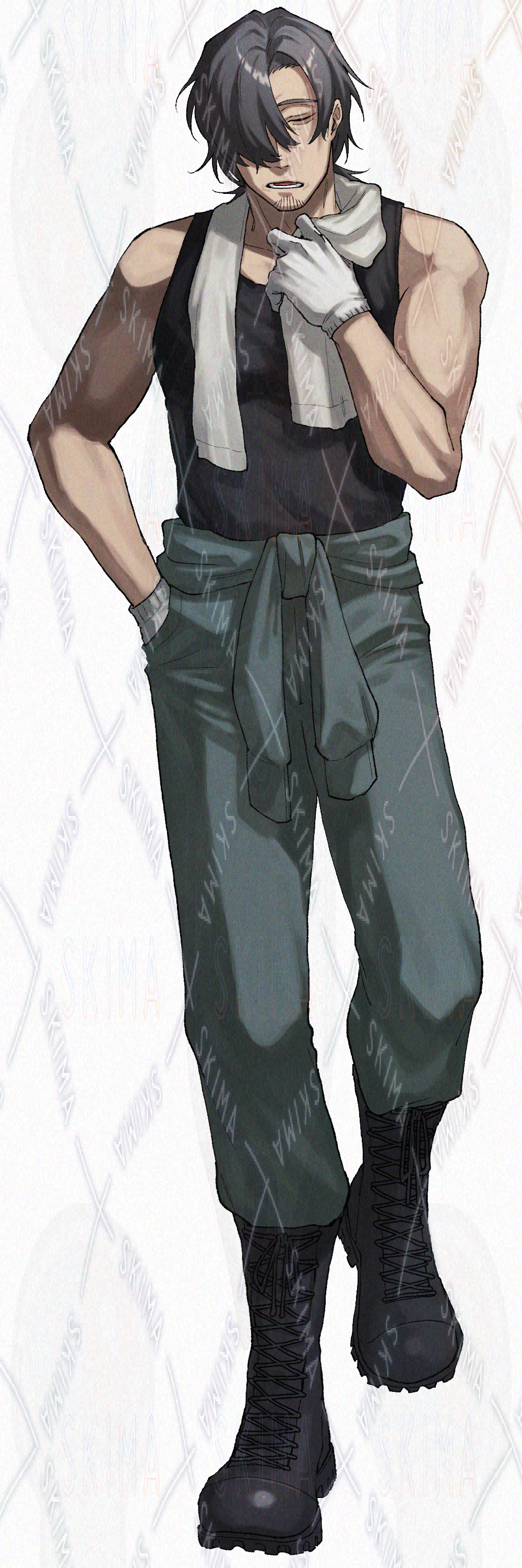 こちらはツナギを着た気だるげそうな男性キャラの立ち絵イラストです。