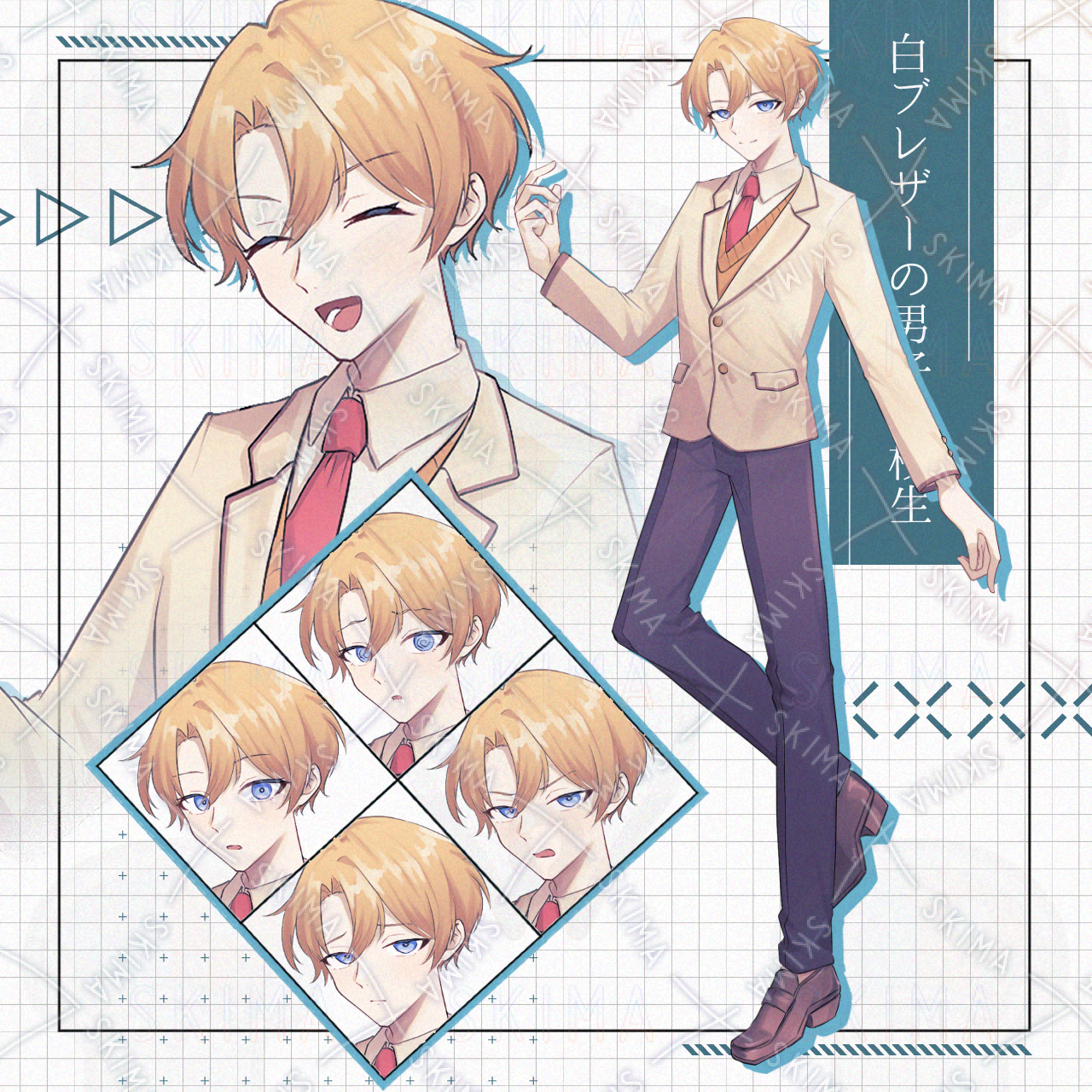 【表情6種】白ブレザーの王子様系男子高校生