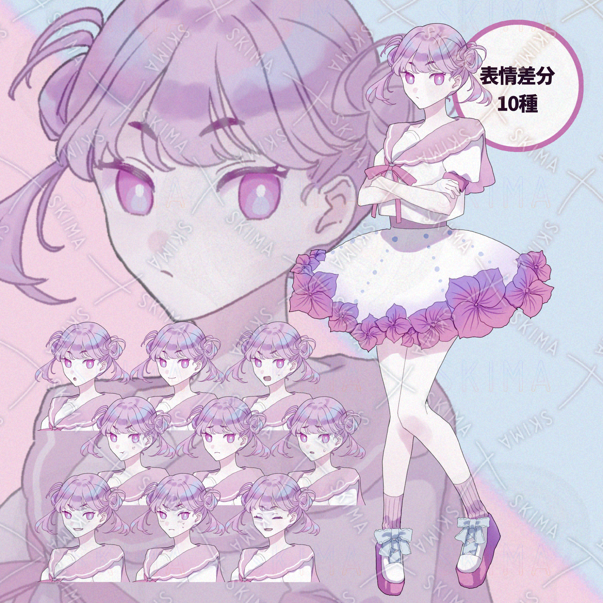 【表情10種】紫陽花モチーフの女の子(ピンク)/Adopt3