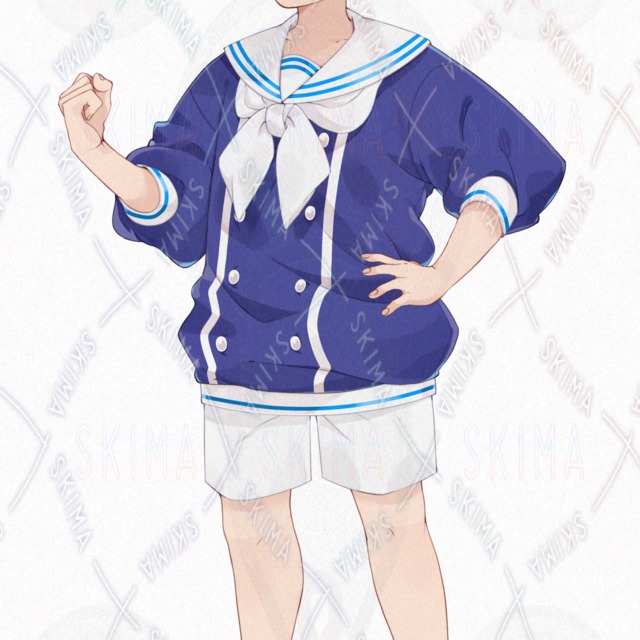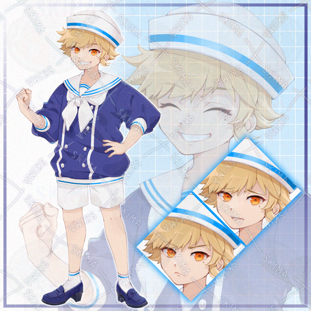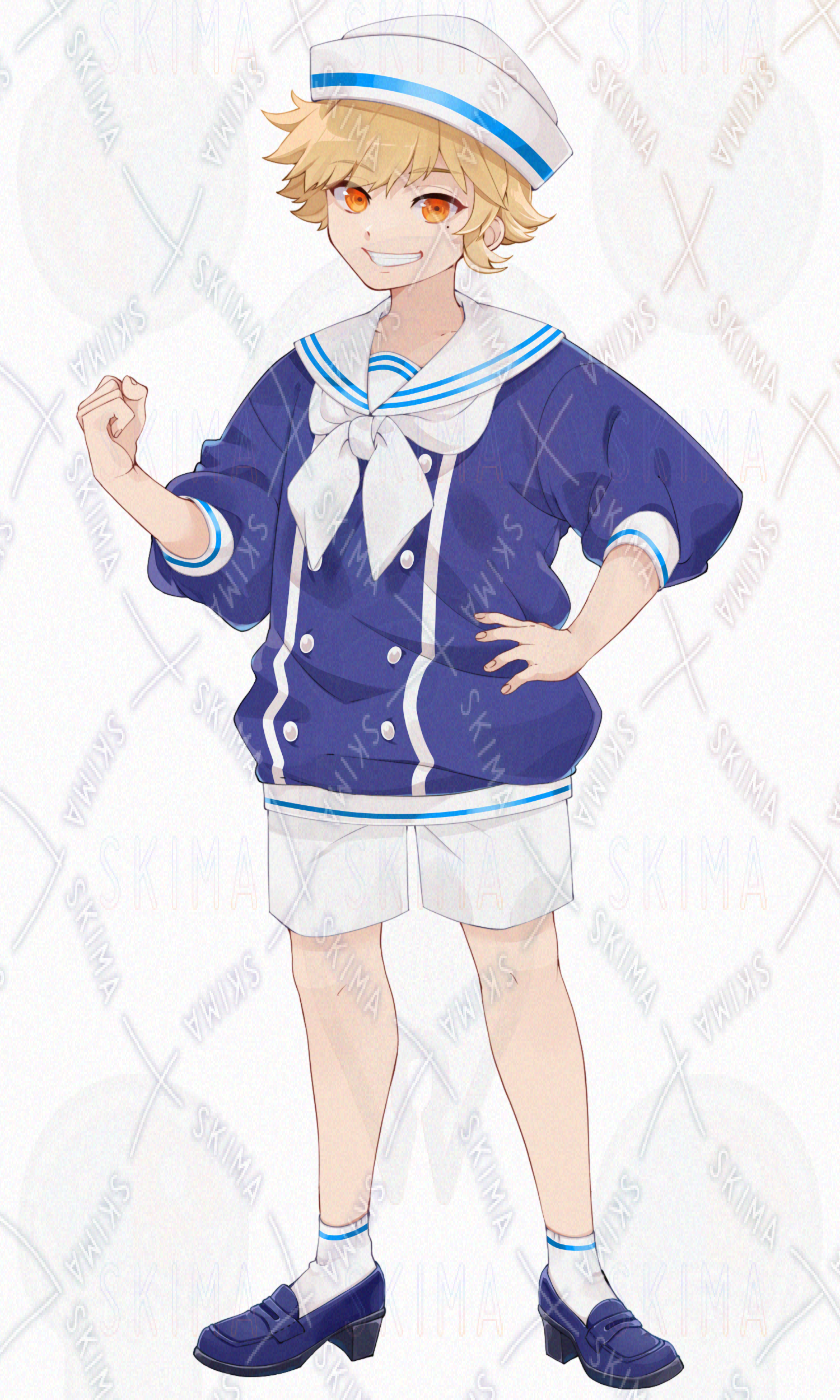 立ち絵/TRPG/少年/男の子/かわいい/かっこいい/夏/マリンルック/海/金髪/帽子/短パン/ローファー/金目/白/青/黄/