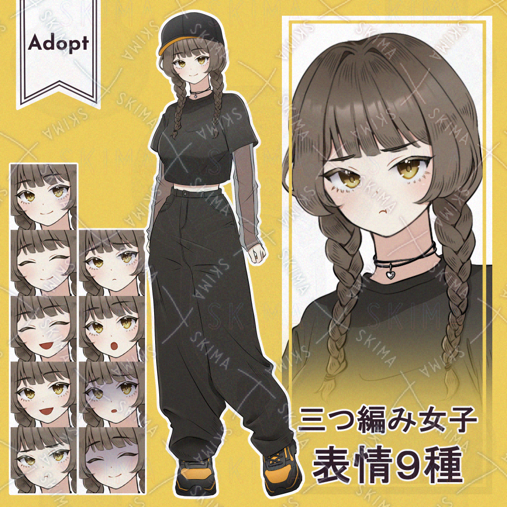 カジュアルファッションの三つ編みの女の子のAdoptです。
