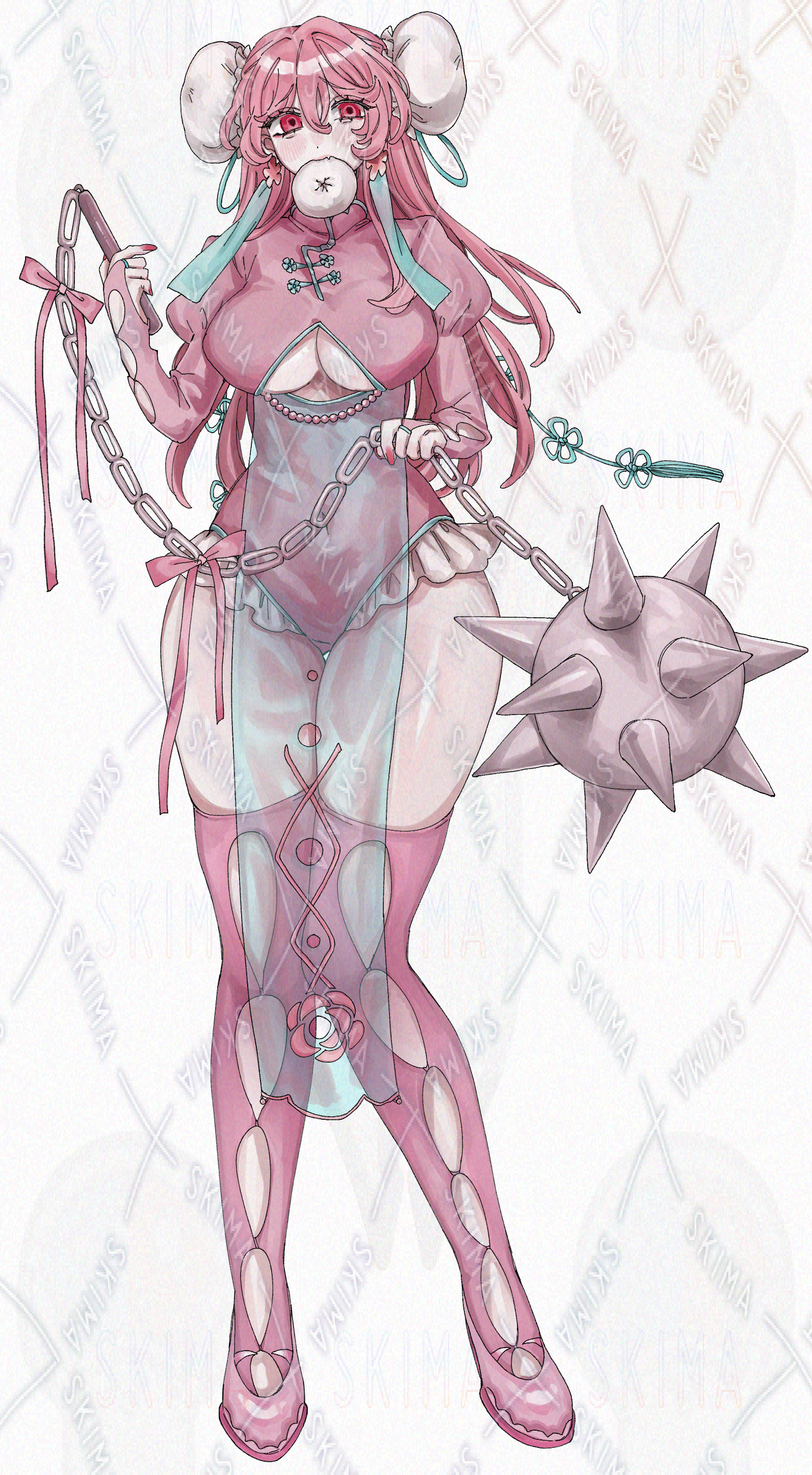 ピンク チャイナ服 モーニングスター 巨乳 セクシーな女性 お姉様 高身長