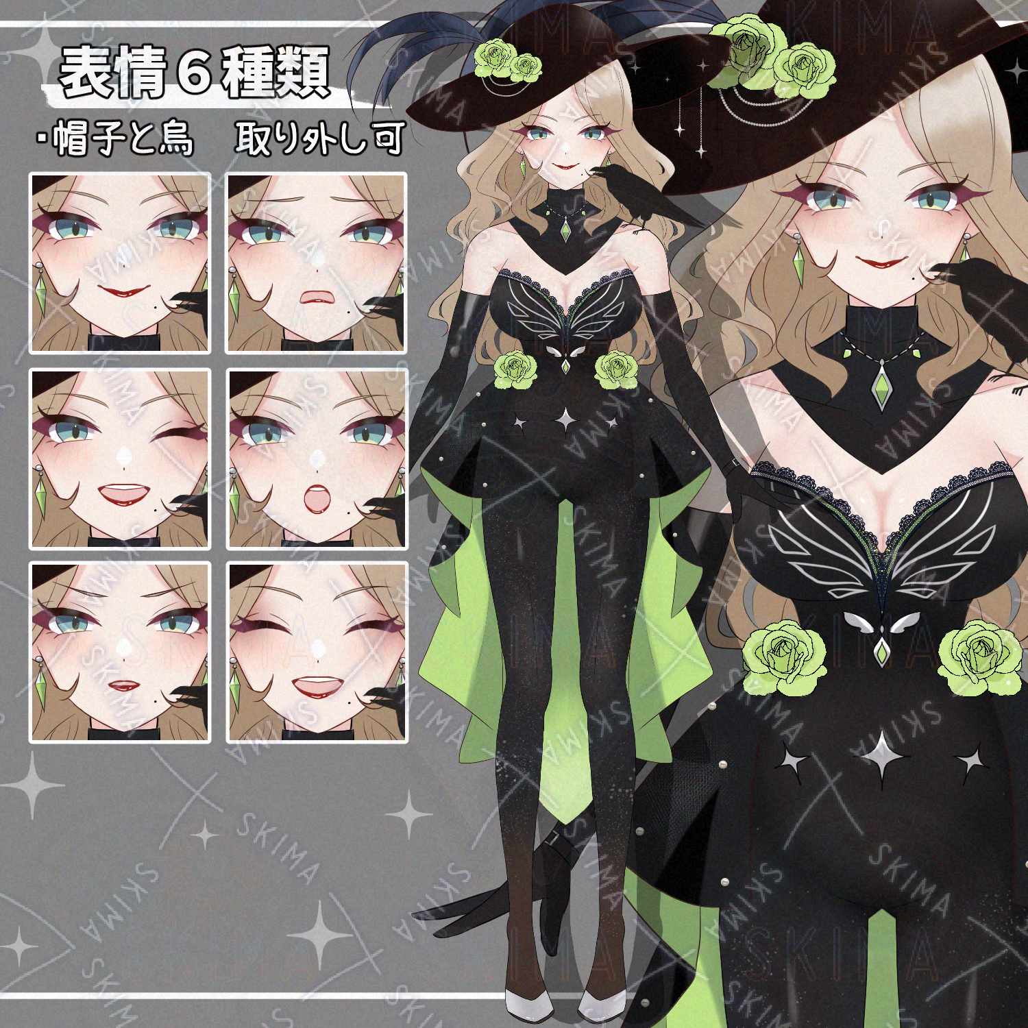 カラスを従えたヴィラン風のお姉さん【表情差分6種】