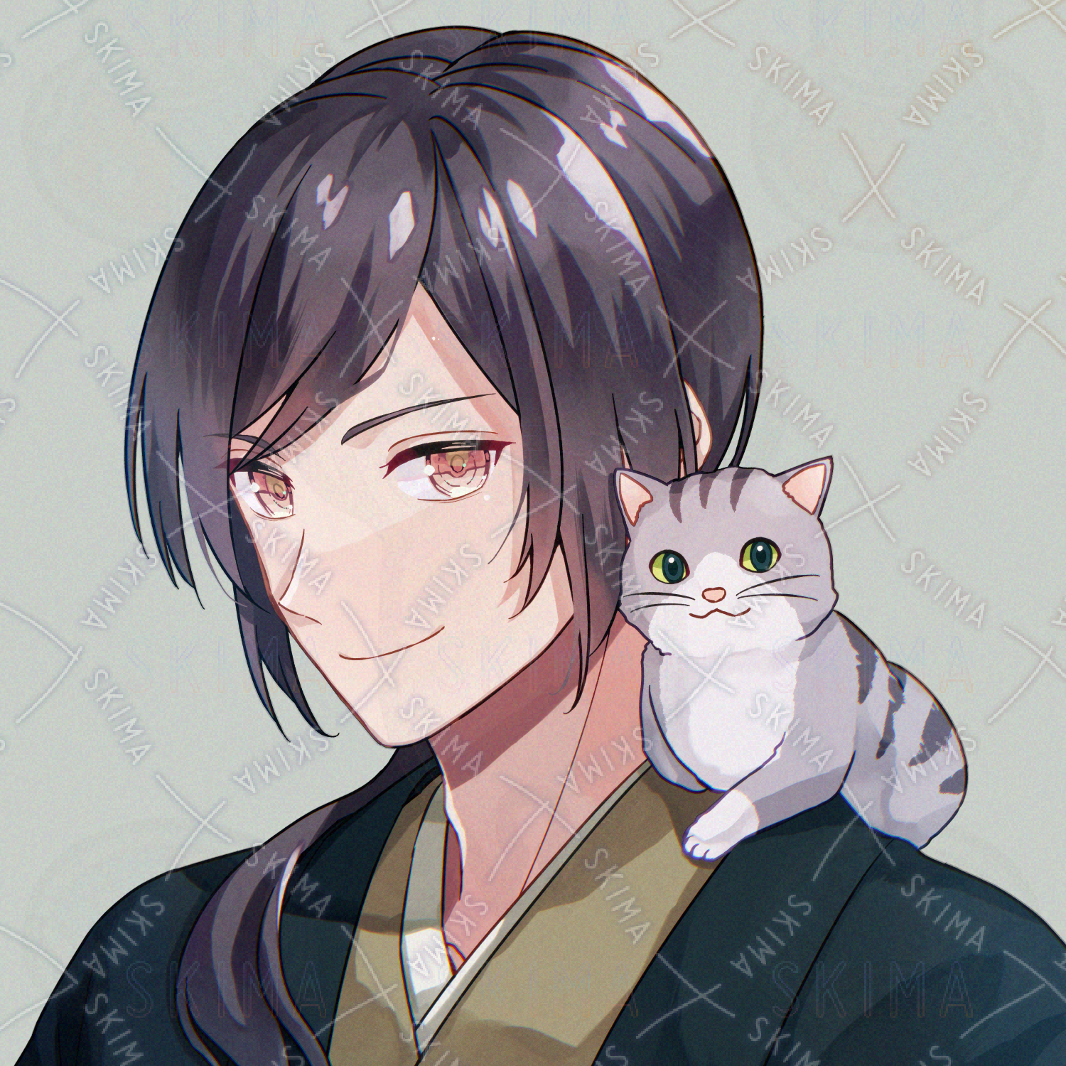 SNSアイコン/和装男性/子猫