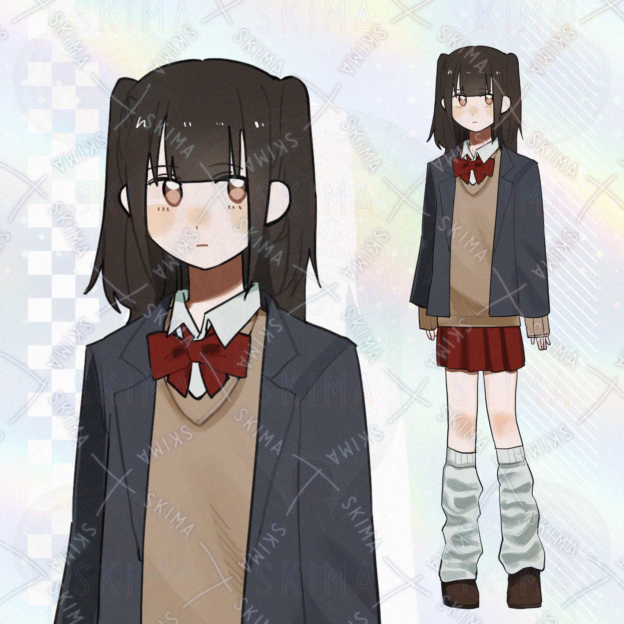 黒髪ハーフツインの女子高校生【表情4種】