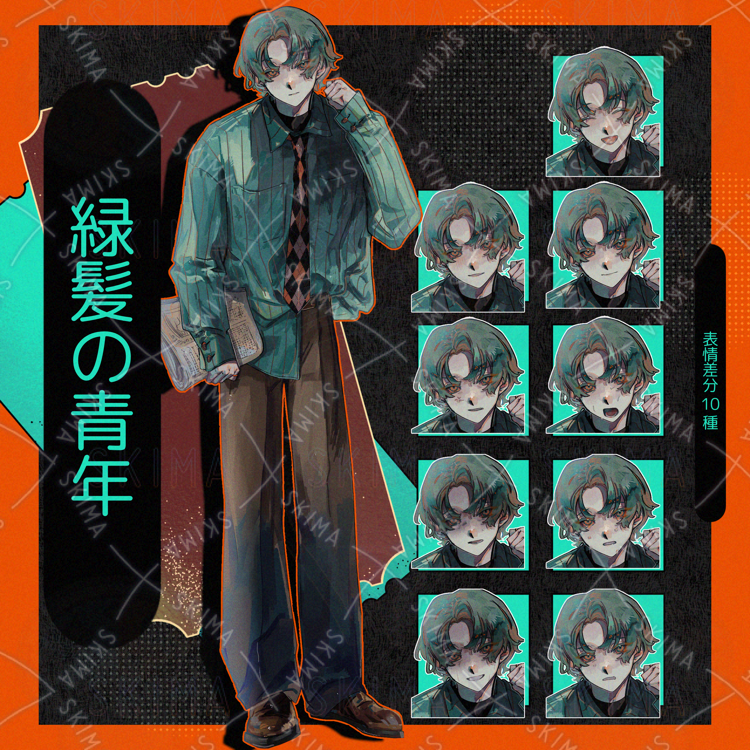 【表情差分10種】緑髪の青年