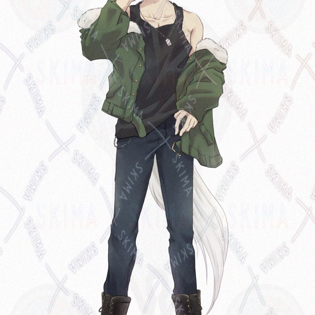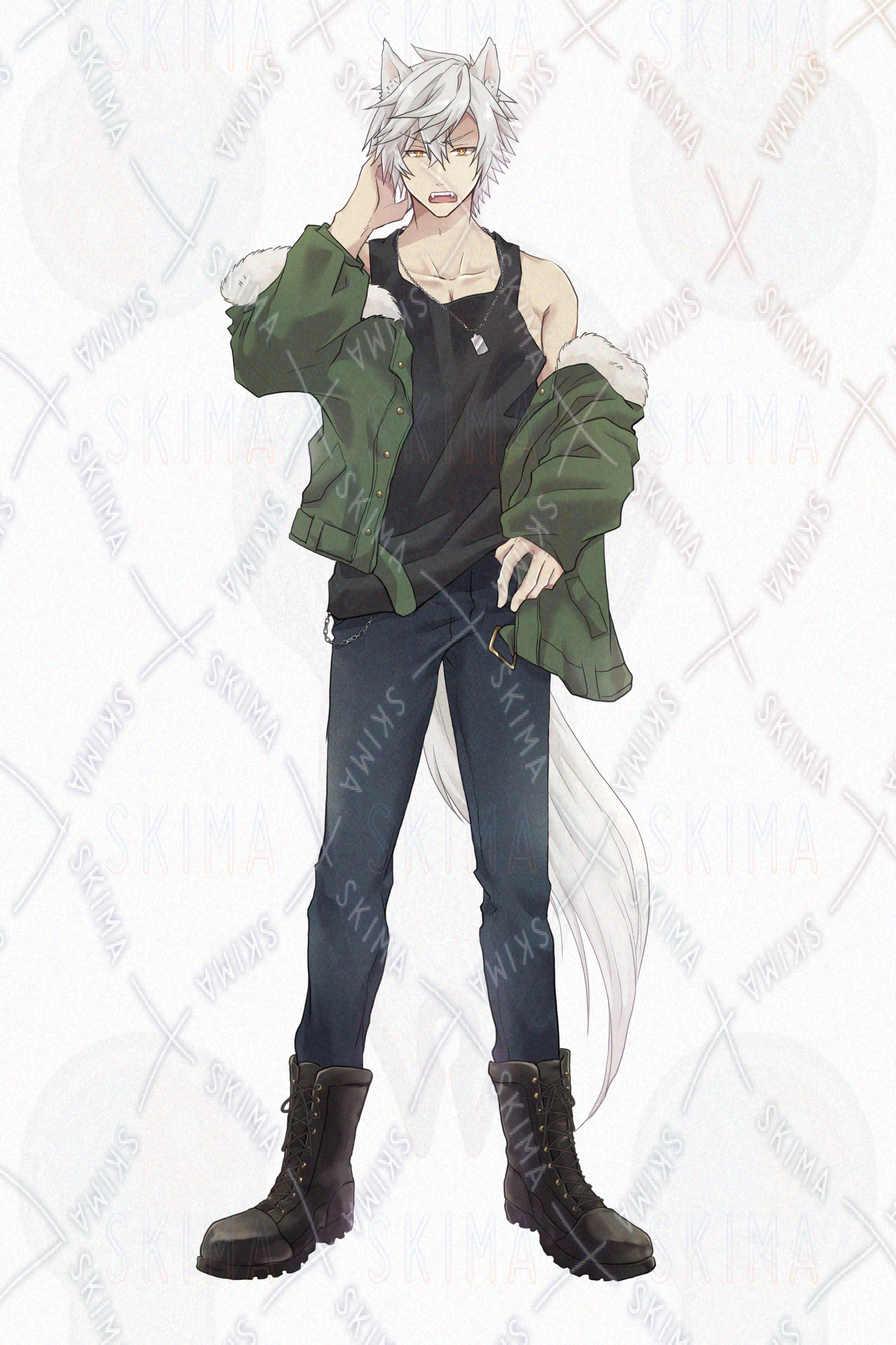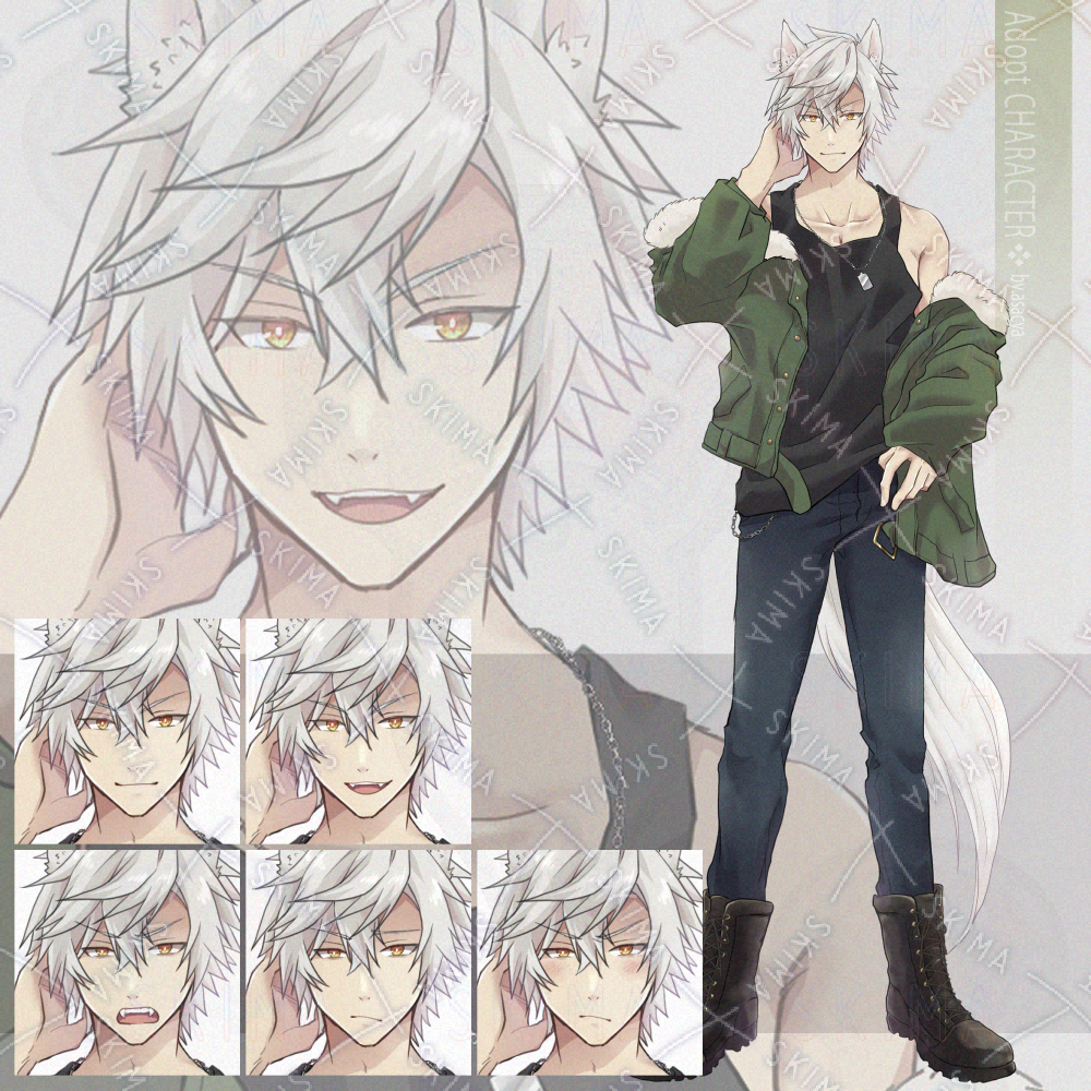 耳と尻尾が生えた狼モチーフの男キャラになります。