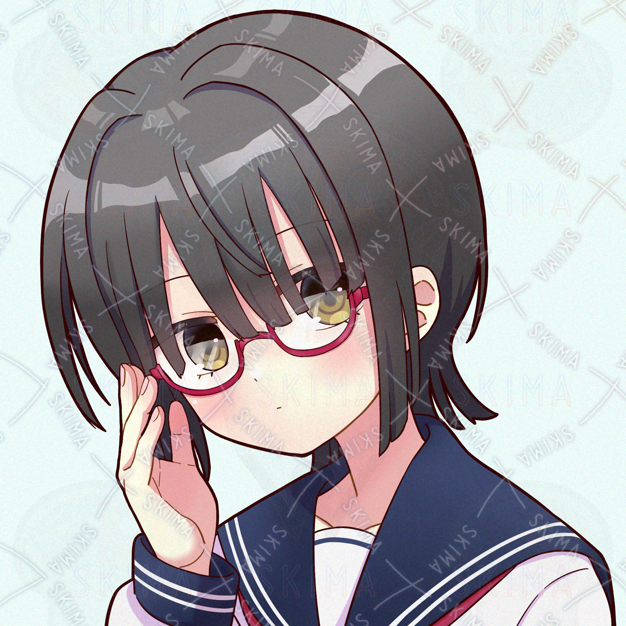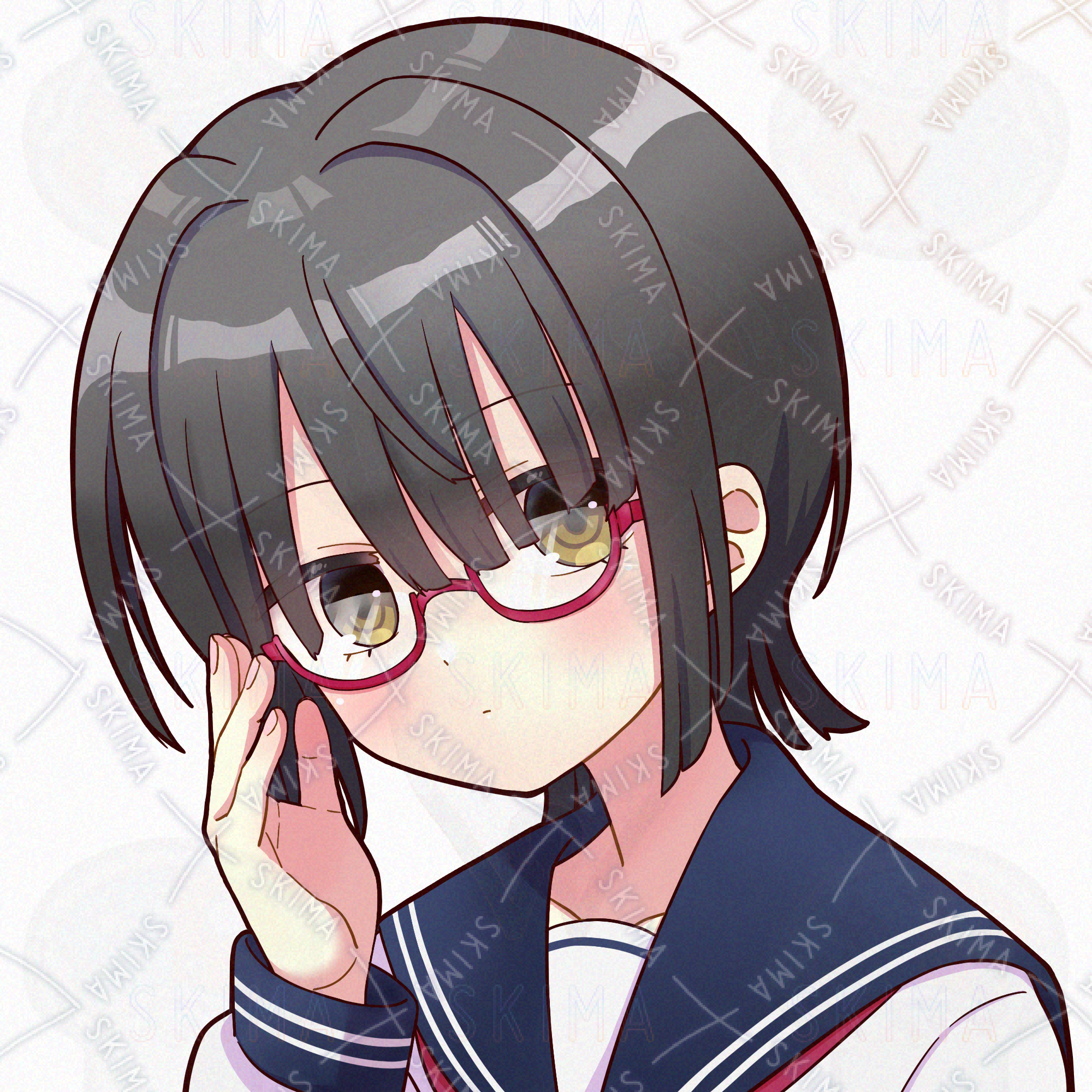 【検索用】セーラー服、眼鏡、女の子、学生、SNSアイコンイラスト