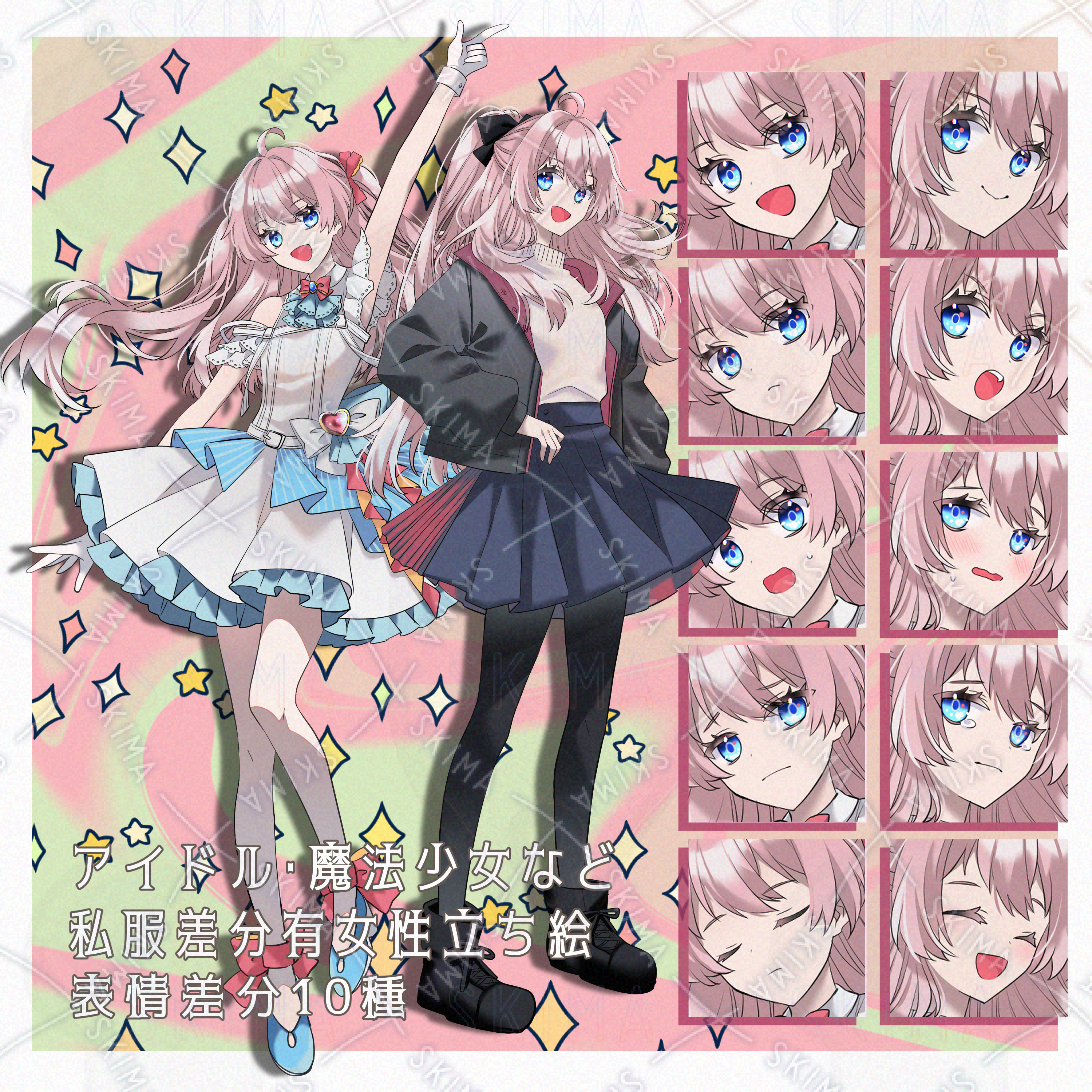 アイドルや魔法少女、双子ちゃんなどにも利用できる女の子立ち絵です。