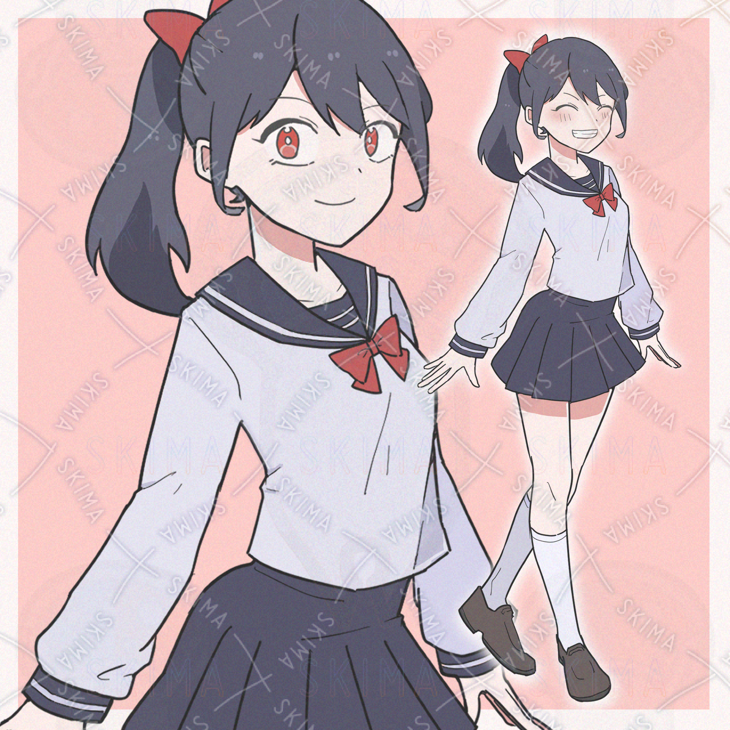【TRPG立ち絵】ポニーテールをしたセーラー服の女の子(差分4枚)