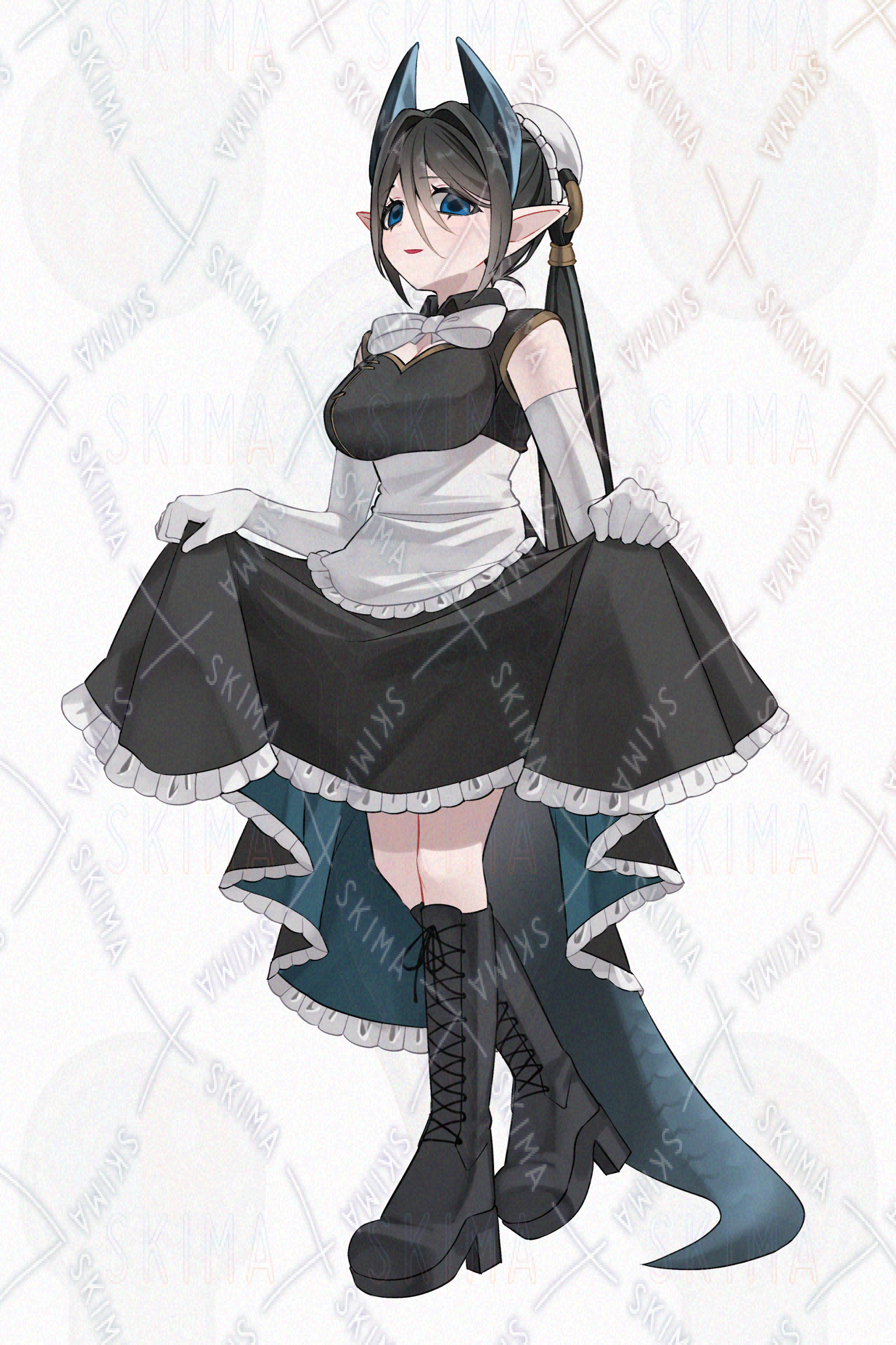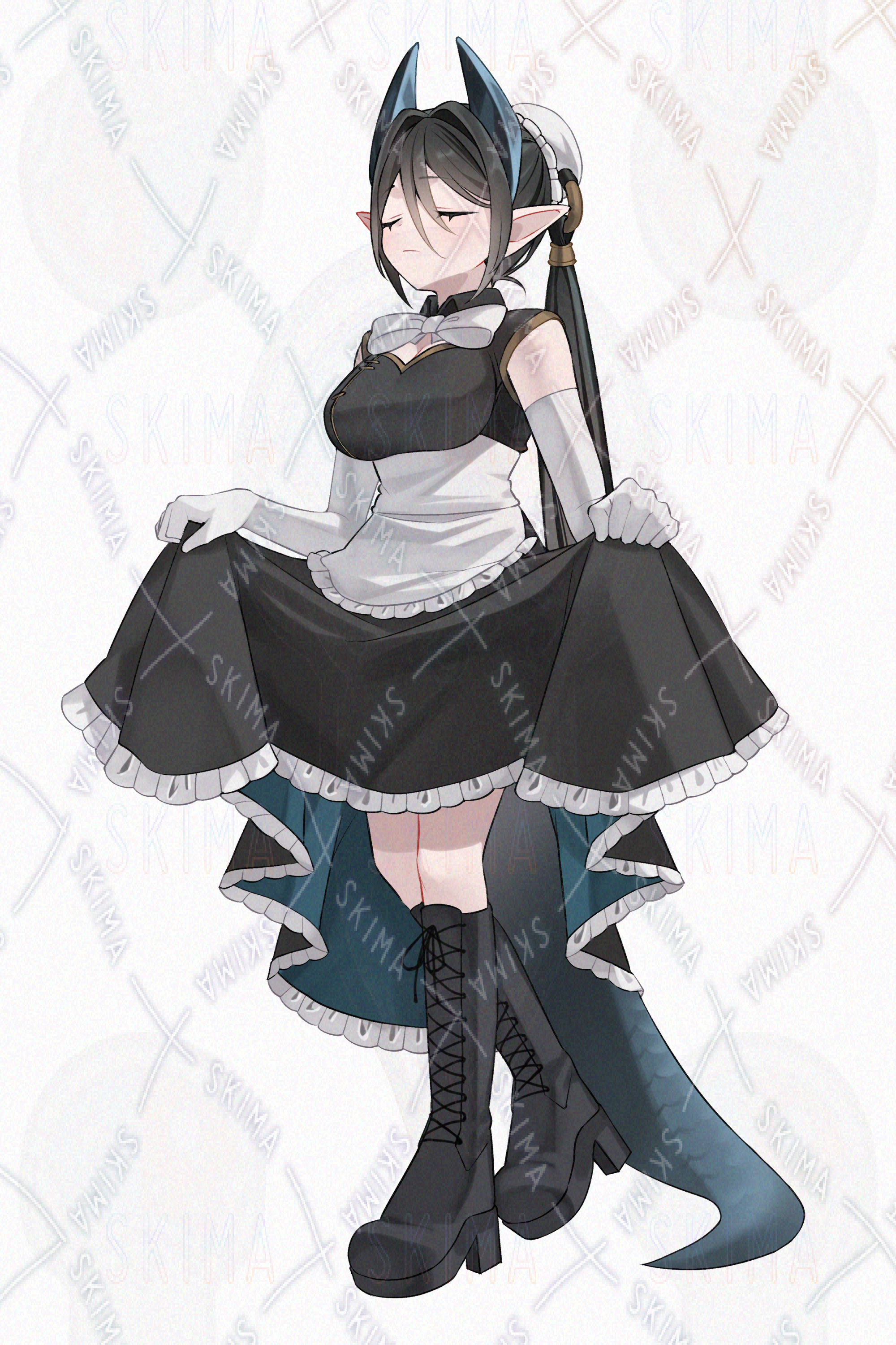 【表情差分6種類】チャイナ風メイド服を着た龍(ドラゴン)女性