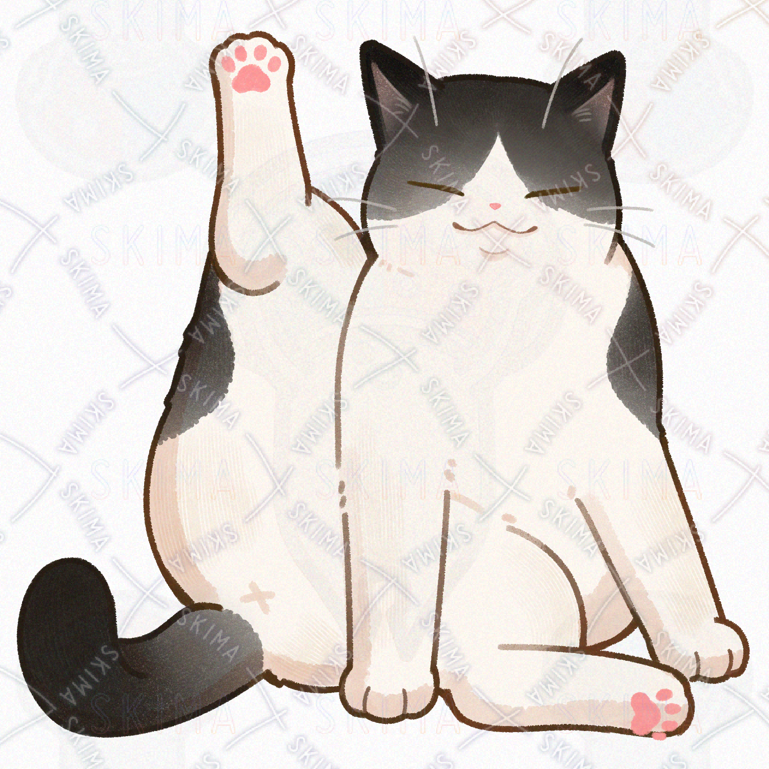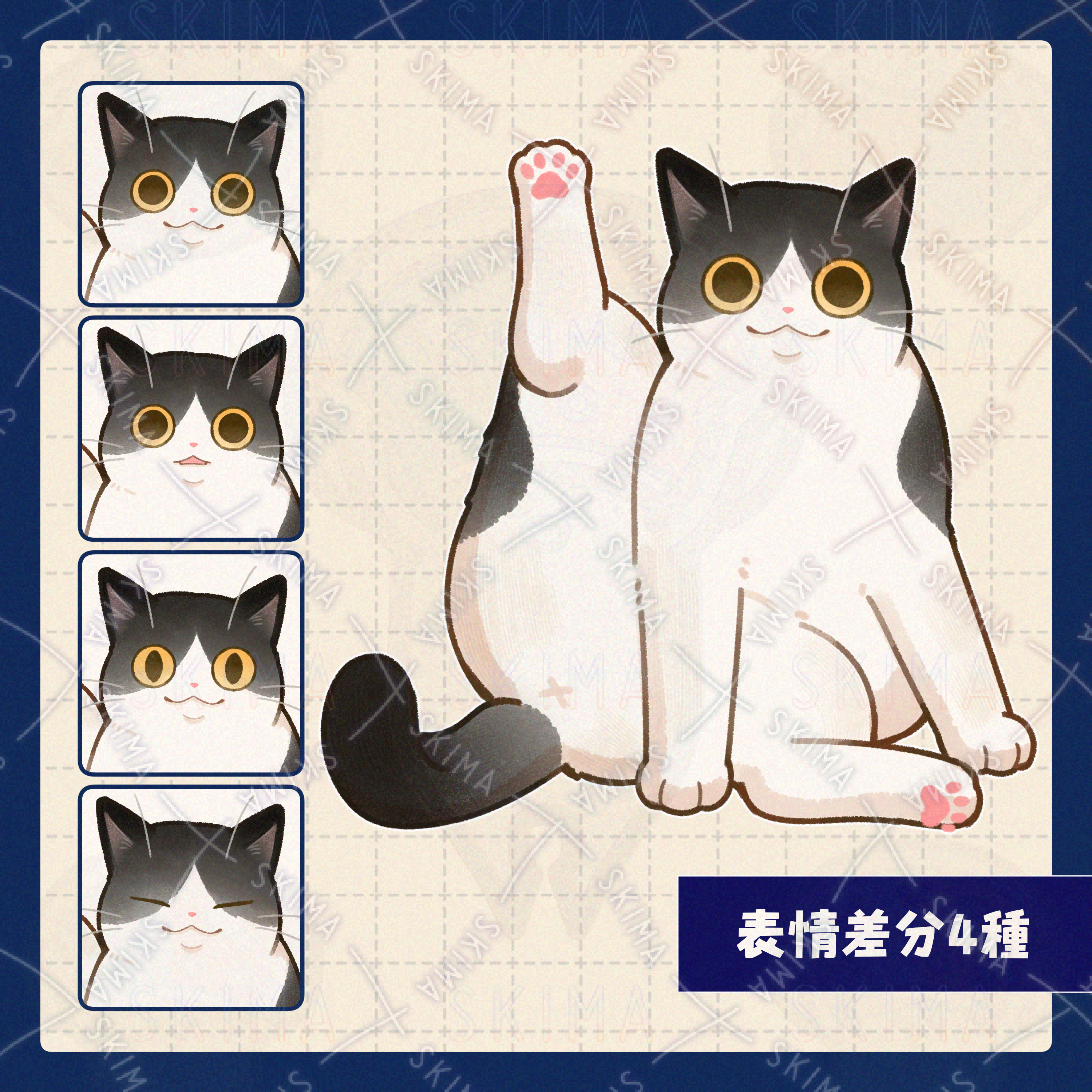 【表情差分4種】片足を上げるハチワレ猫