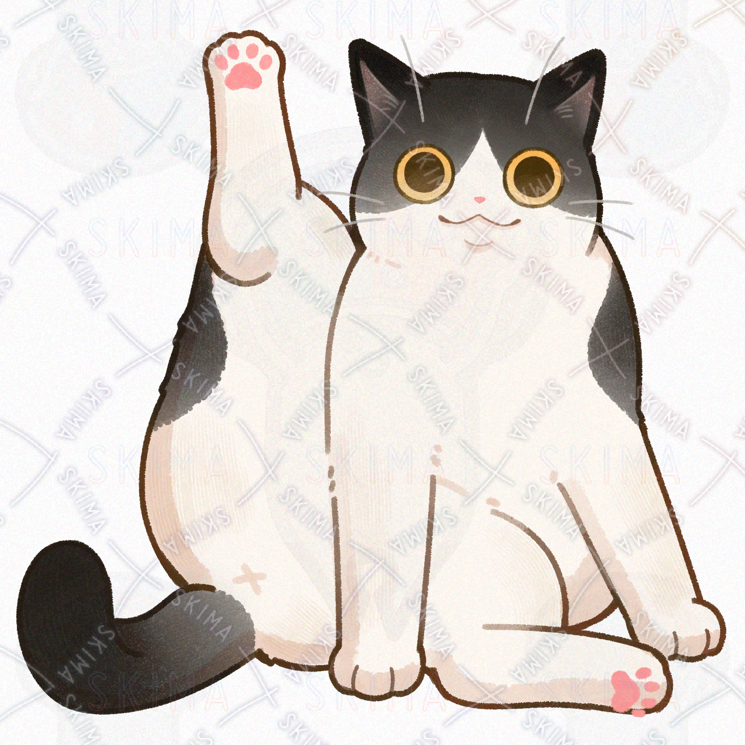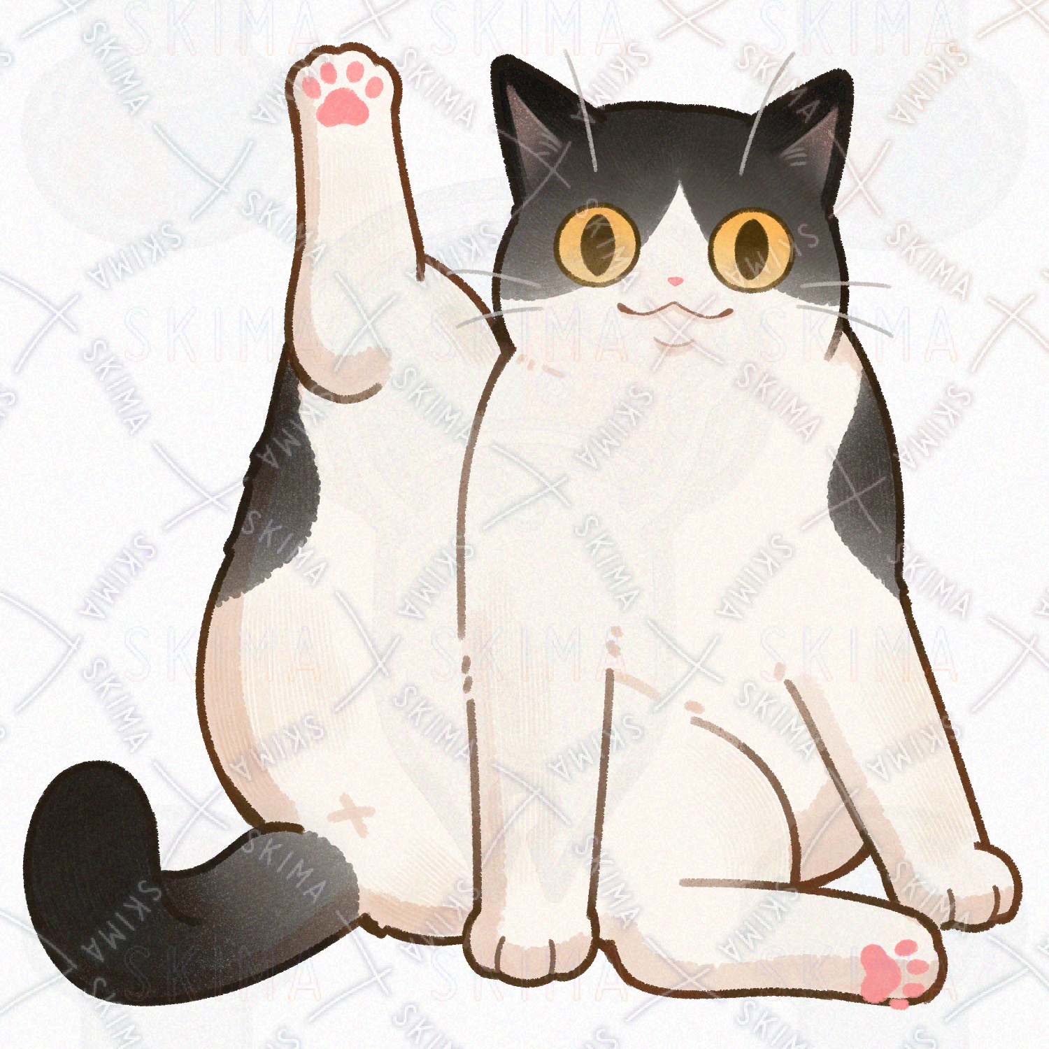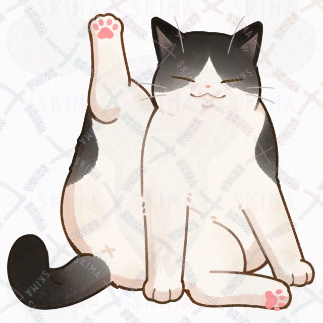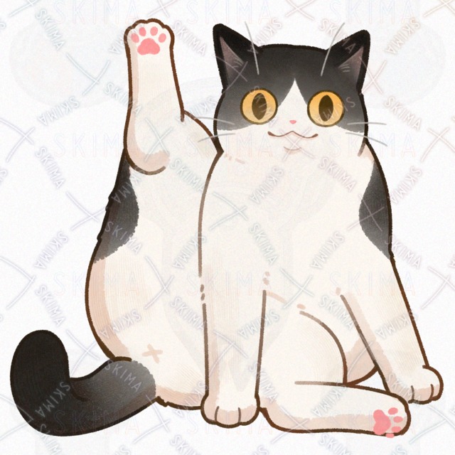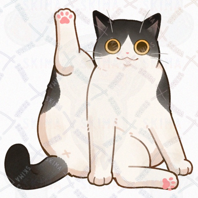こちらは片足を上げるハチワレ猫のキャラ販売です。