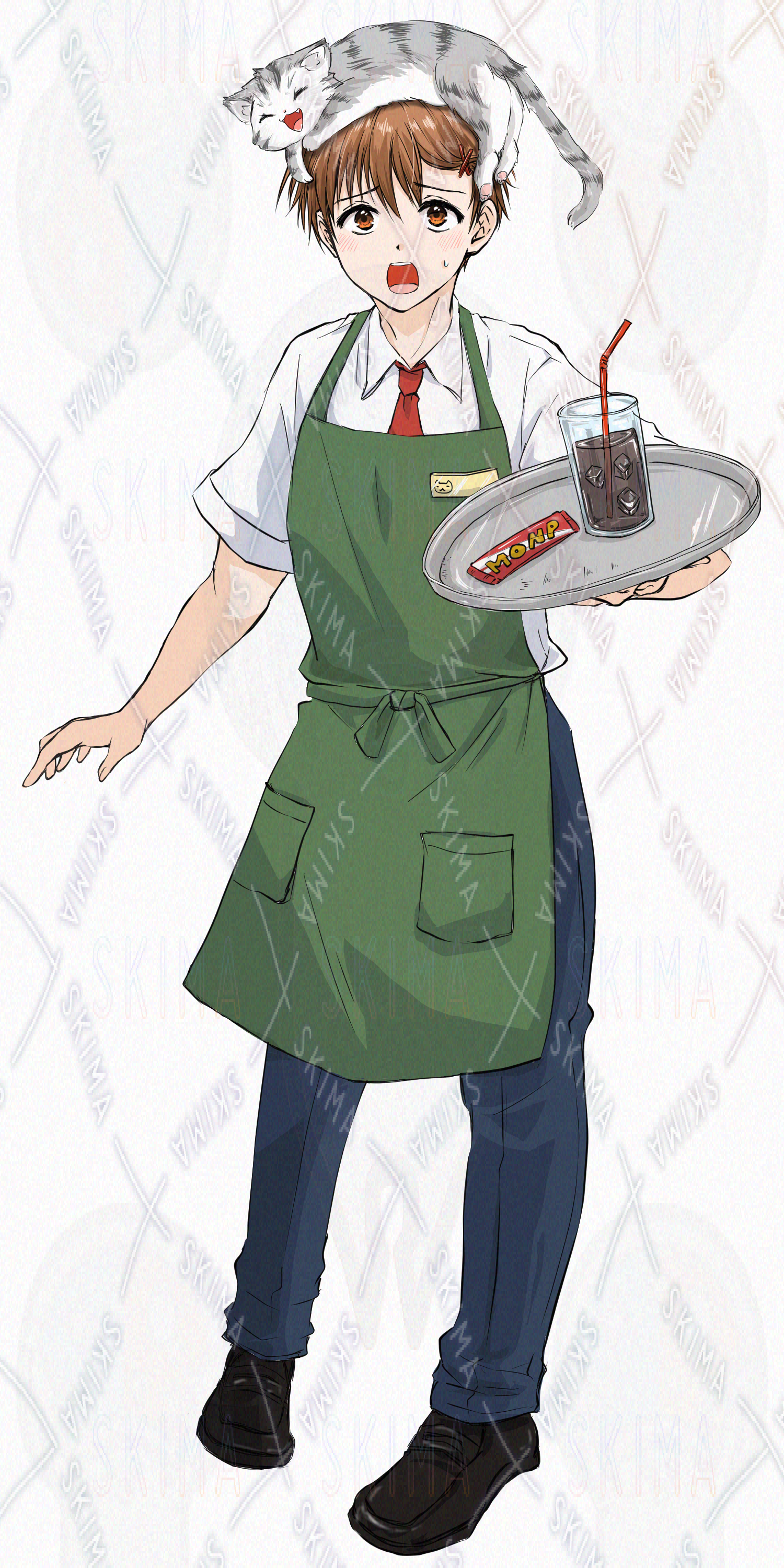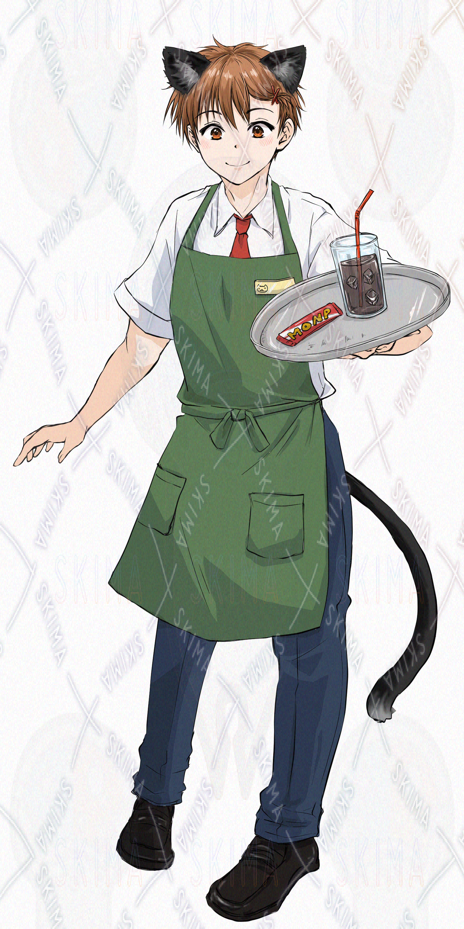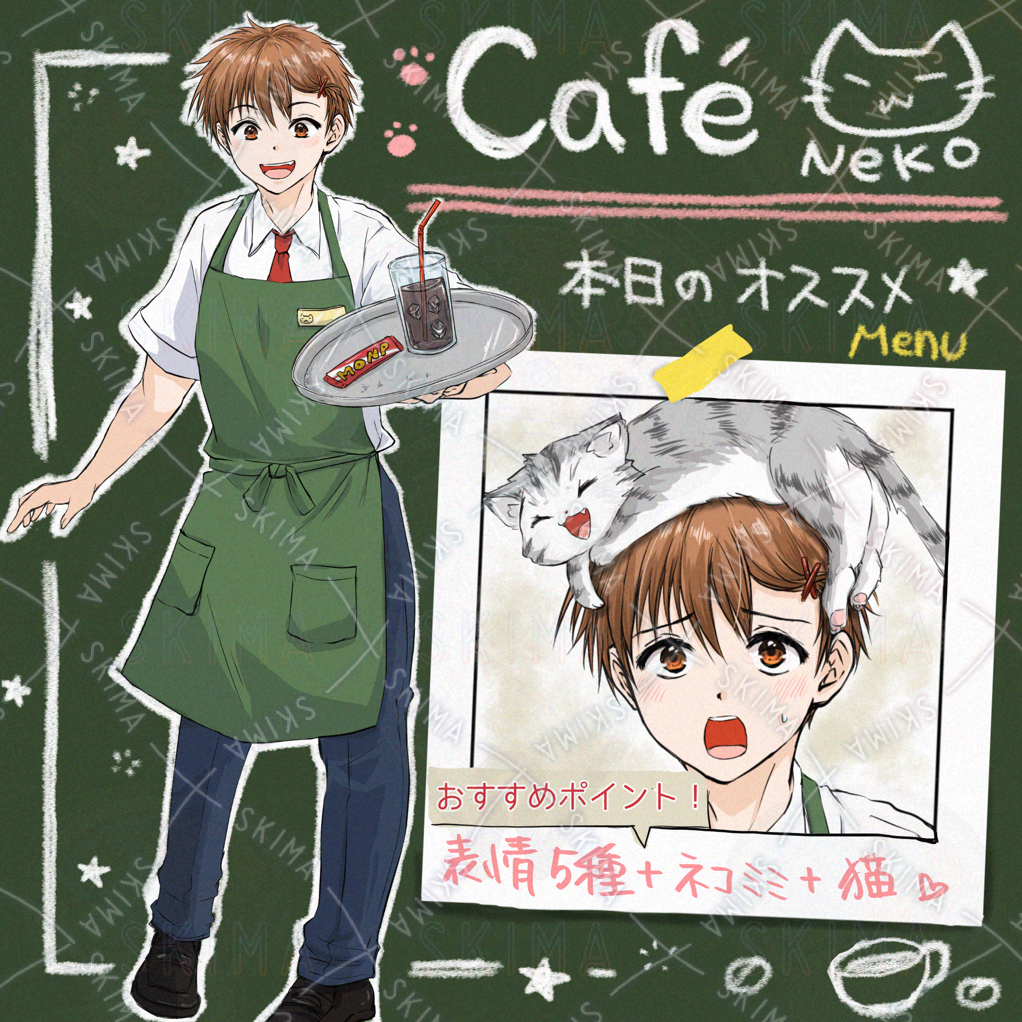 「猫カフェ男子」立ち絵素材(表情差分5種+猫+猫耳付き)