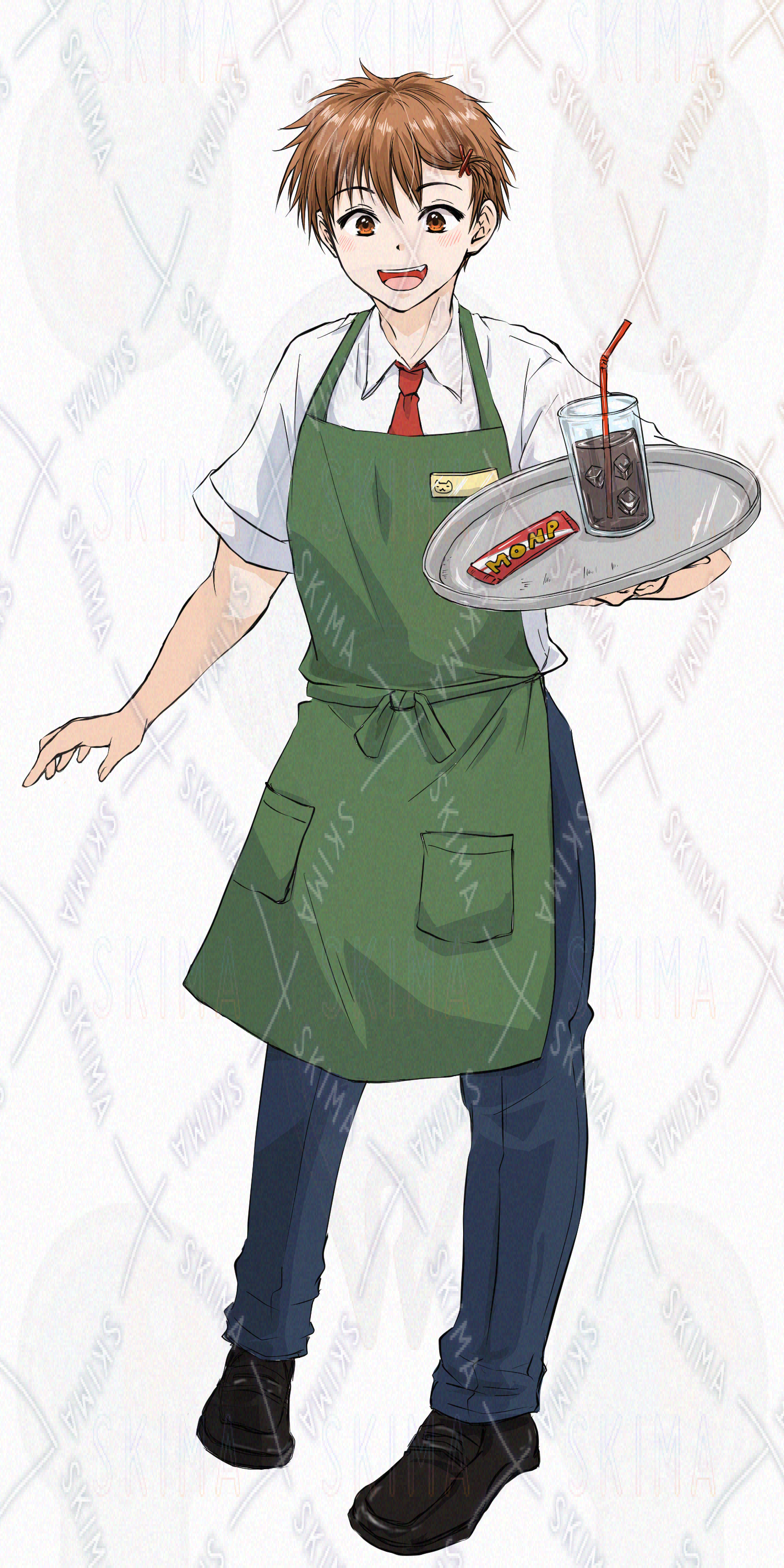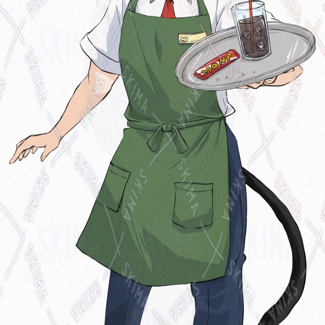 ふんわり優しげな雰囲気の、猫カフェで働く男子高校生の立ち絵素材です🌸