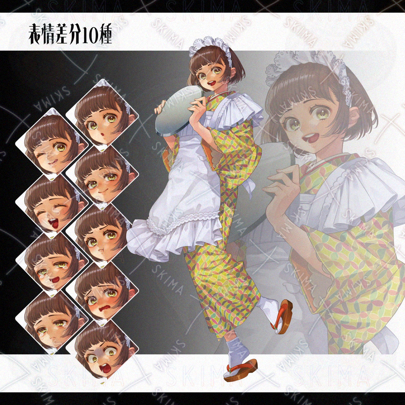 【表情10種】着物の女給
