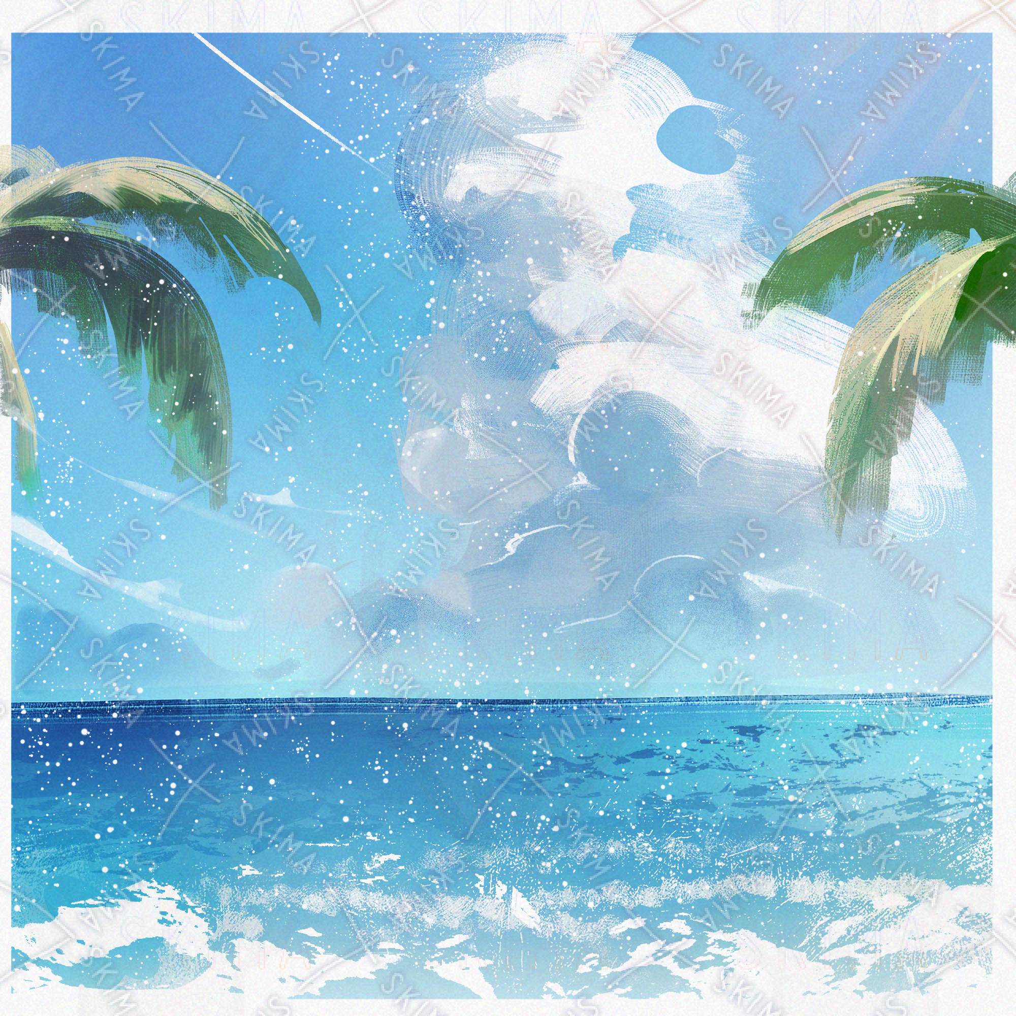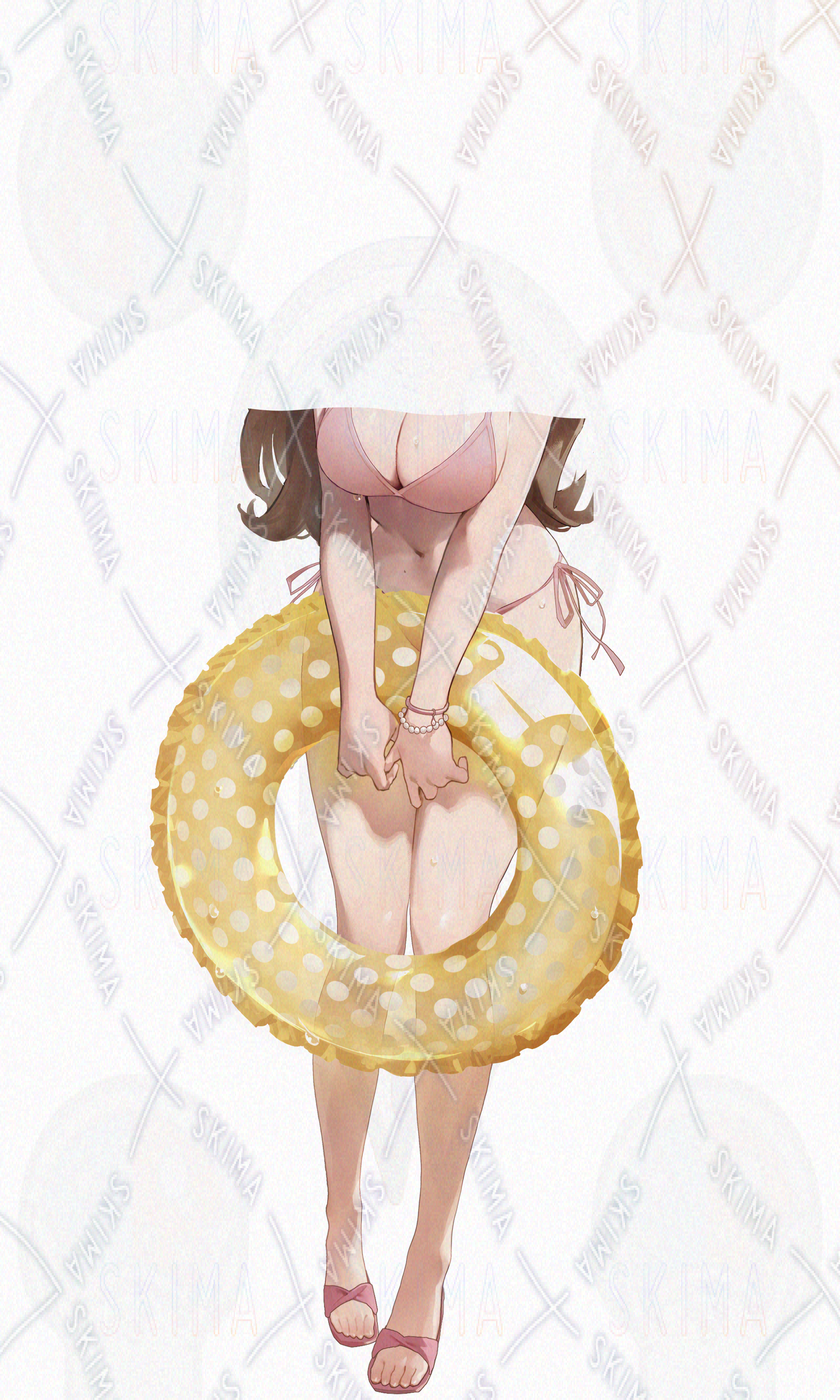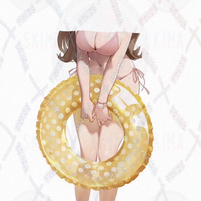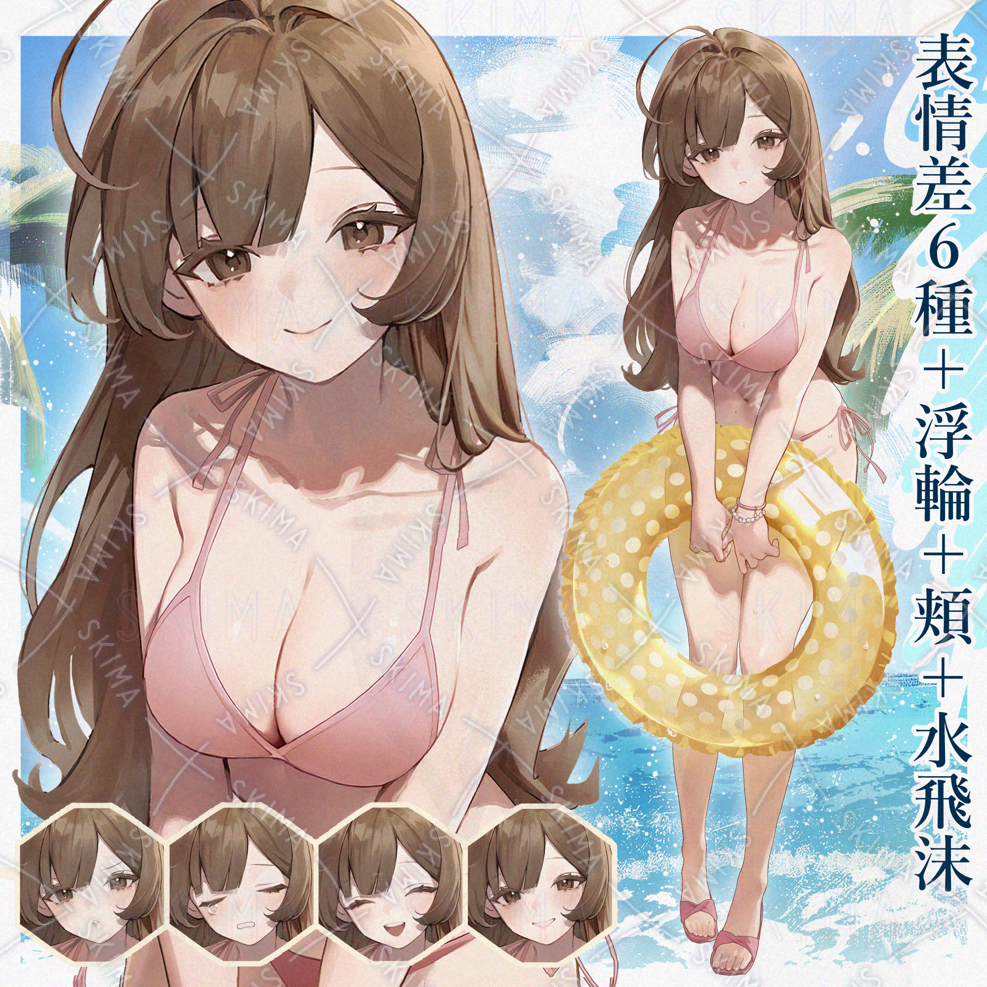 水着の女の子【表情差6種+頬+水飛沫+浮き輪+海背景】