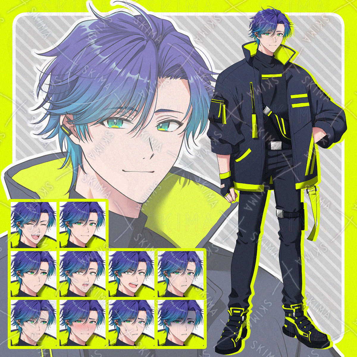 【表情10種】サイバーパンク風の青年