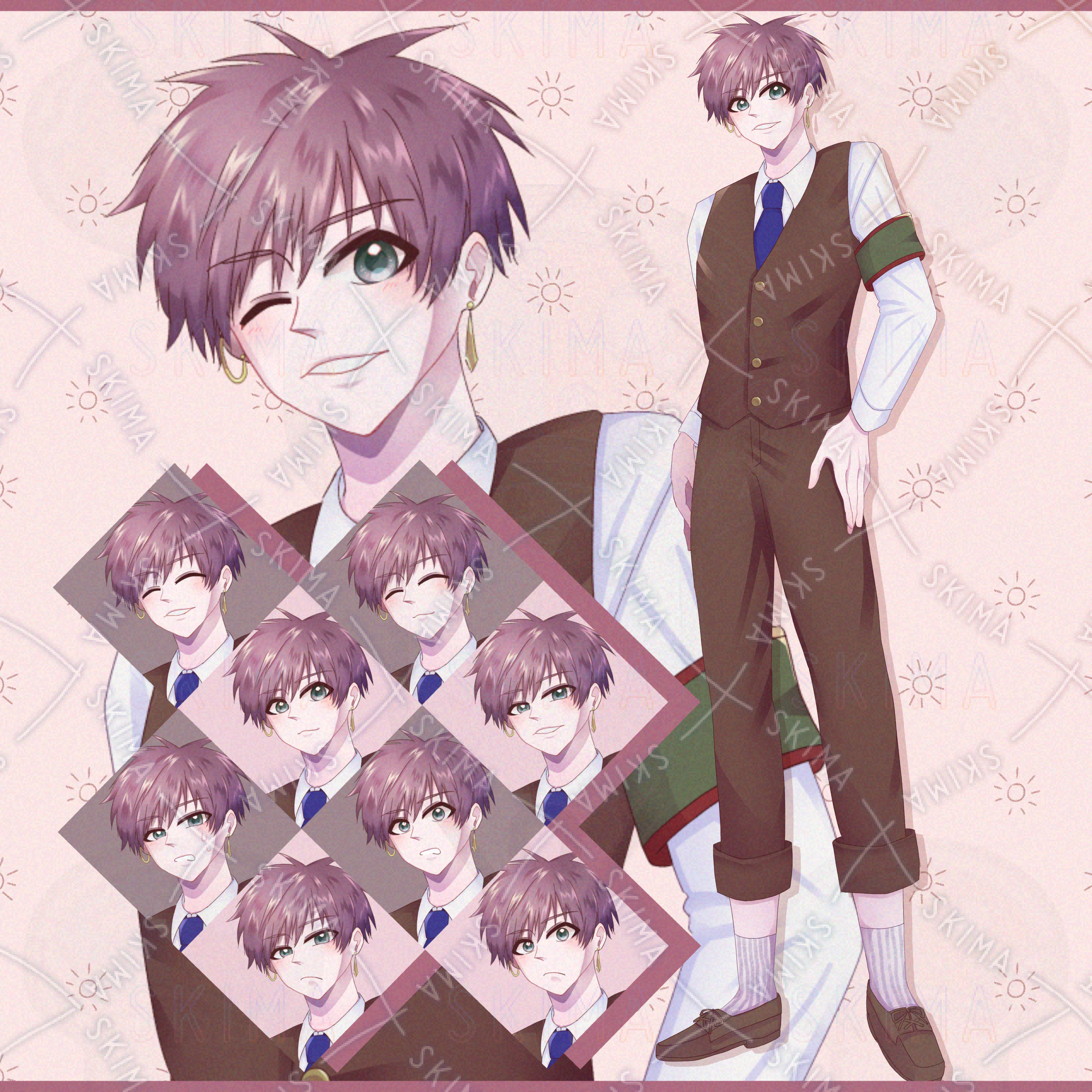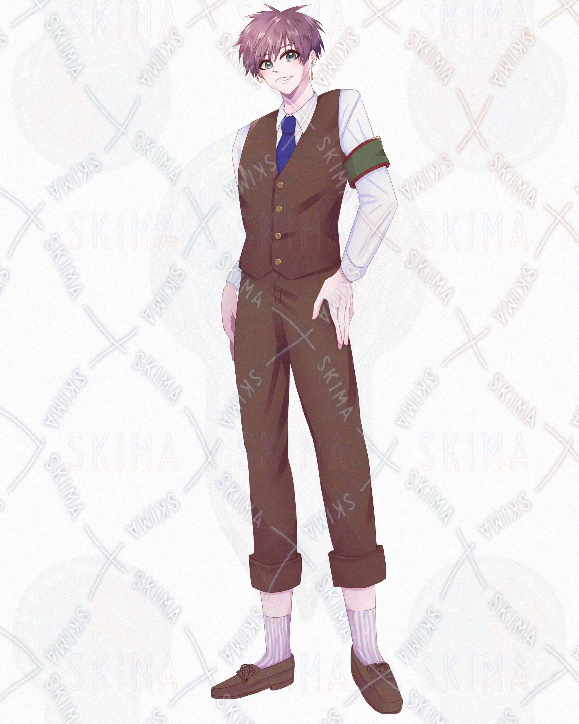 腕章、ピアス、ベスト、ロールアップ、茶色、小豆色、ウィンク