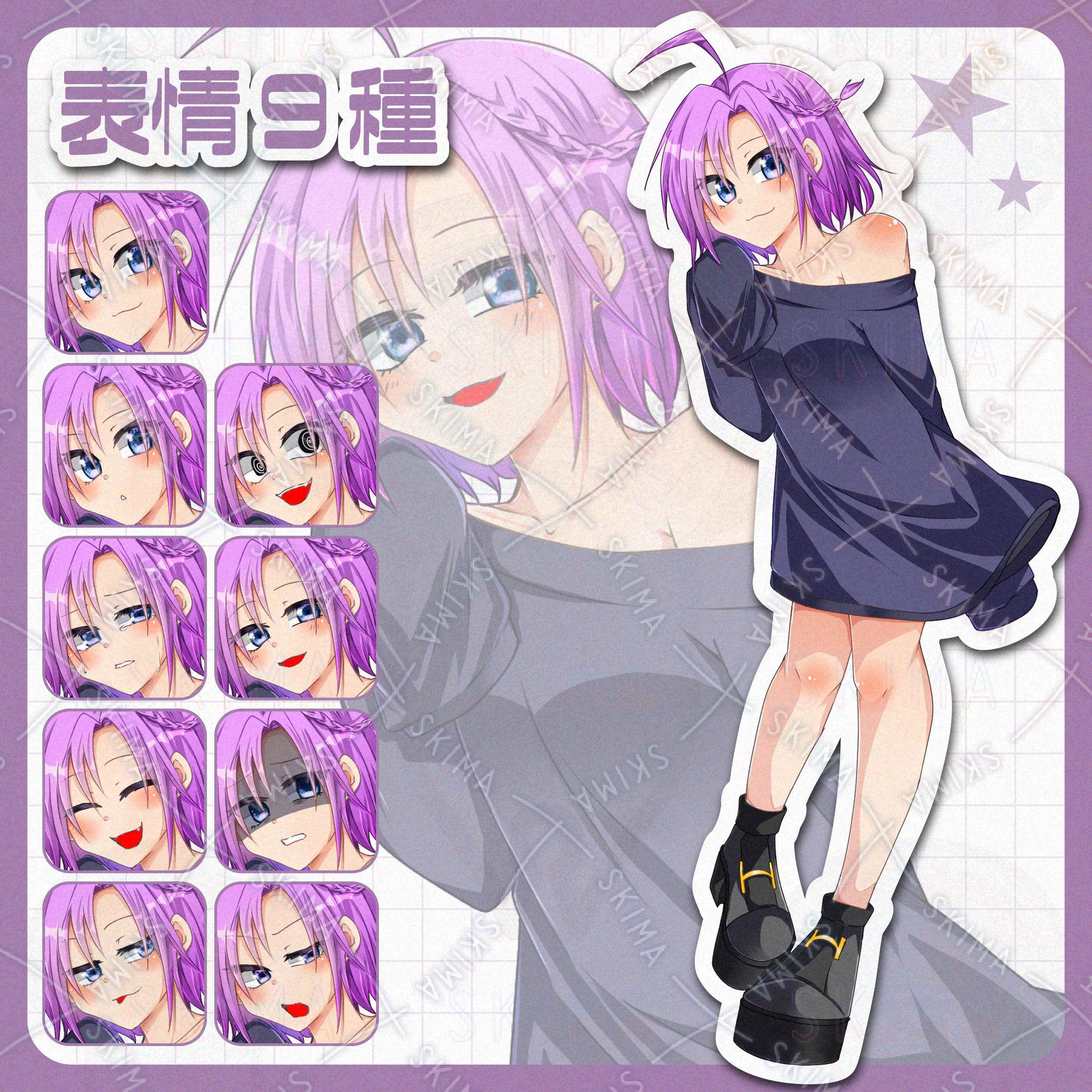 【表情9種】紫髪の女の子