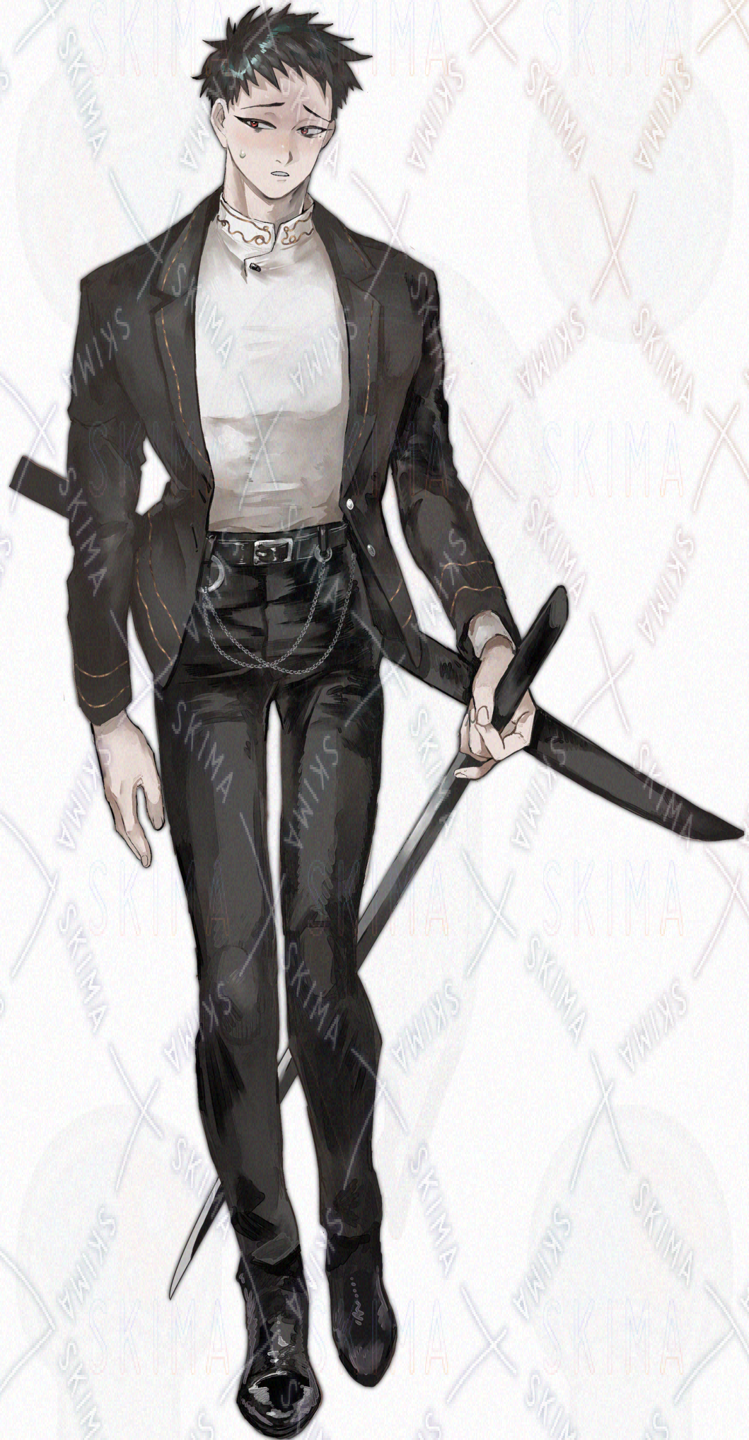 短髪赤目童顔スーツ剣士【表情差分8種】